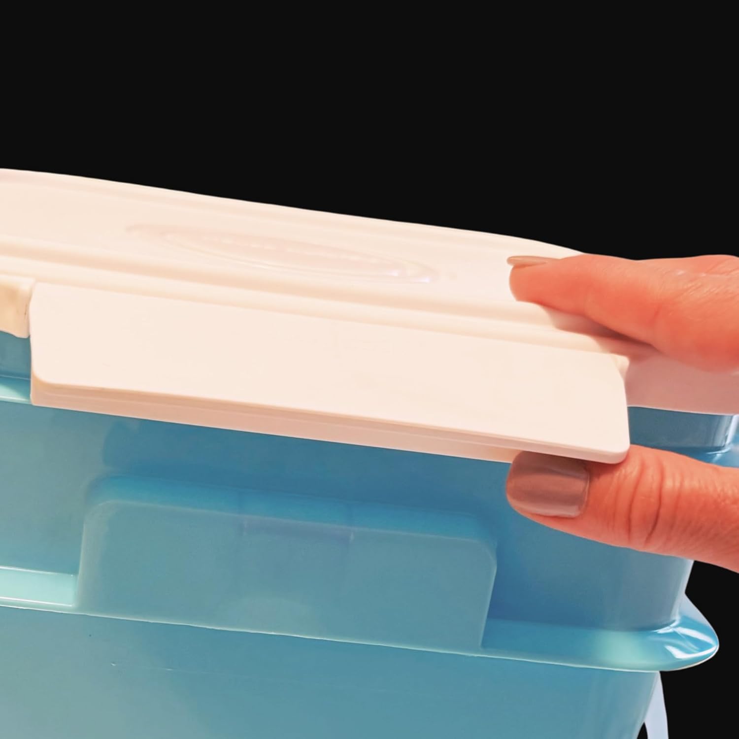 House Naturals 4 Gallon Square Food Grade Bucket Pail with Plastic Handles and Lid (Pack of 3) Made in USA containers (Aqua-White lids)