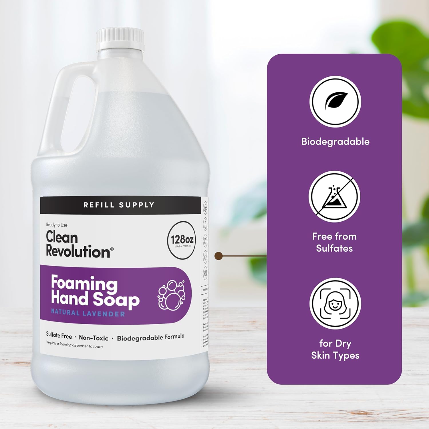 Clean Revolution Foaming Hand Soap Refill Supply Container, Ready to Use Formula, Gluten Free, Natural Lavender Fragrance, 128 Fl. Oz, 4 Pack