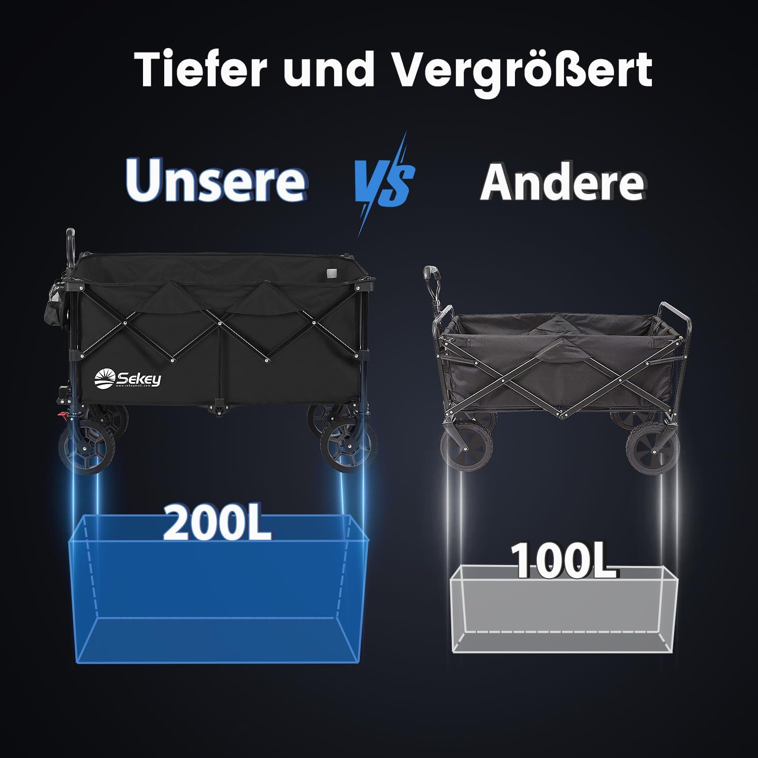 Sekey 220L Collapsible Foldable Wagon with 330lbs Weight Capacity, Heavy Duty Folding Wagon Cart with Big All-Terrain Wheels & Drink Holders (Black)