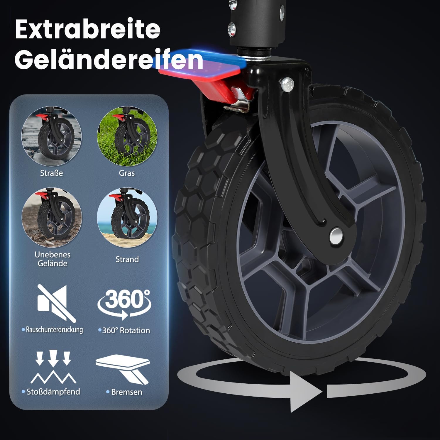 • 【𝐇𝐢𝐠𝐡𝐞𝐬𝐭 𝐐𝐮𝐚𝐥𝐢𝐭𝐲】: Folding wagon with 𝟳" diameter 𝐛𝐢𝐠 𝐚𝐥𝐥-𝐭𝐞𝐫𝐫𝐚𝐢𝐧 wheels move smoothly for any occasion, such as fishing, camping, shopping, and gardening.The waterproof fabric is 𝟔𝟎𝟎𝐃Oxford which won’t tear when sharp objects are placed inside.