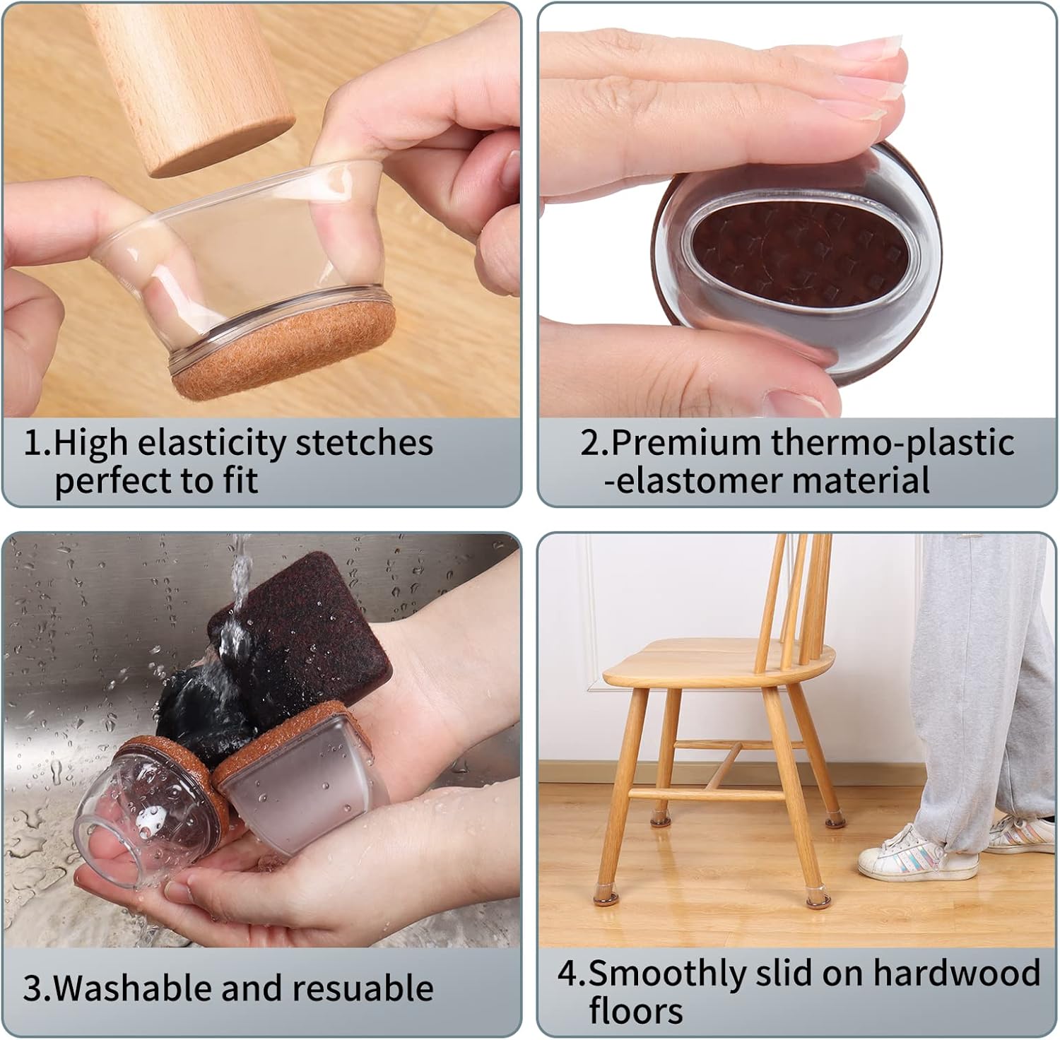 • ☛【Reduce Noise and Prevent Scratches】- Dining table leg covers for hardwood floors more durable to friction and no scratches. Felt furniture pads on the bottom reduces resistance and allow easy, smooth movement of furniture.