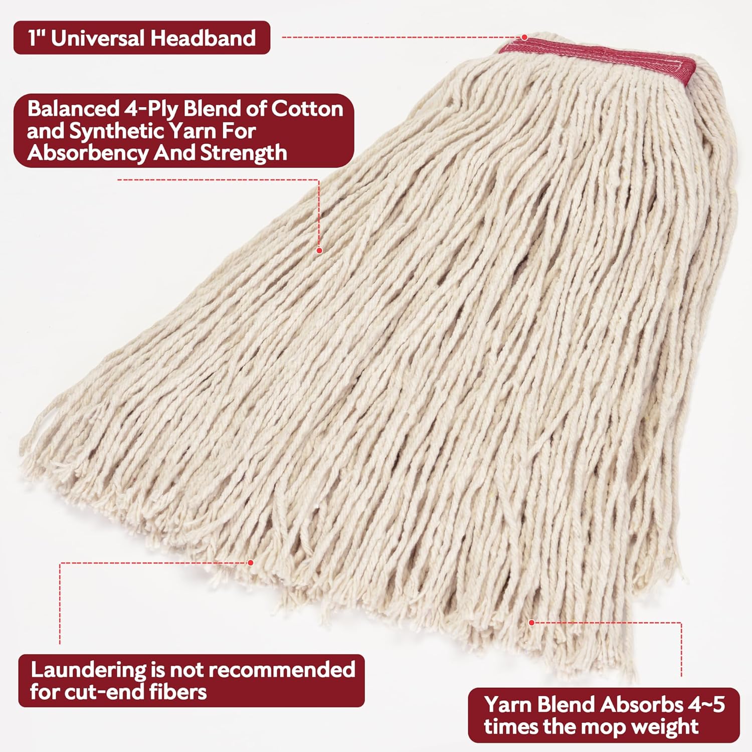 • Exceptional Absorption - Cotton-synthetic blended yarn mop with excellent absorbency picks up liquids and spills effectively.It also provides a soft and gentle touch,being suitable for various floor surfaces.4-ply cotton cut-end mops reduce fraying and preserve hygiene&Freshness of floors