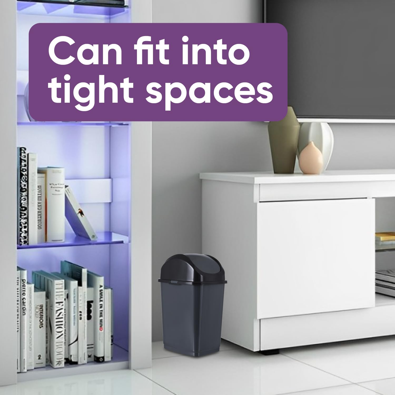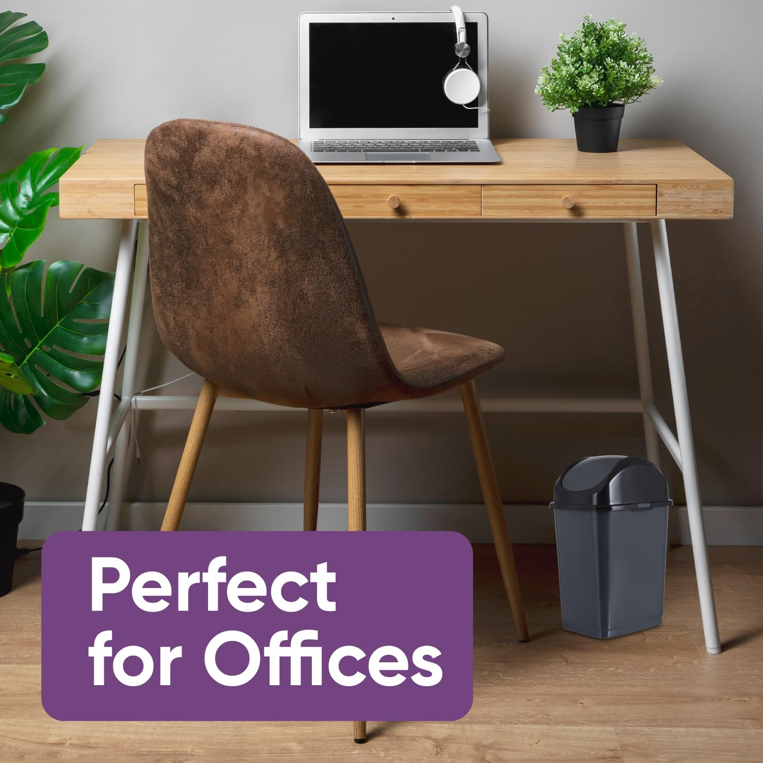 Superio Small 2.5 Gallon Plastic Trash Can with Swing Top Lid, Compact Slim Waste Bin for Under Desk, Office, Bedroom, Bathroom, Dorm Room, 10 Qt. Portable Garbage Can (Dark Grey, 2 Pack)