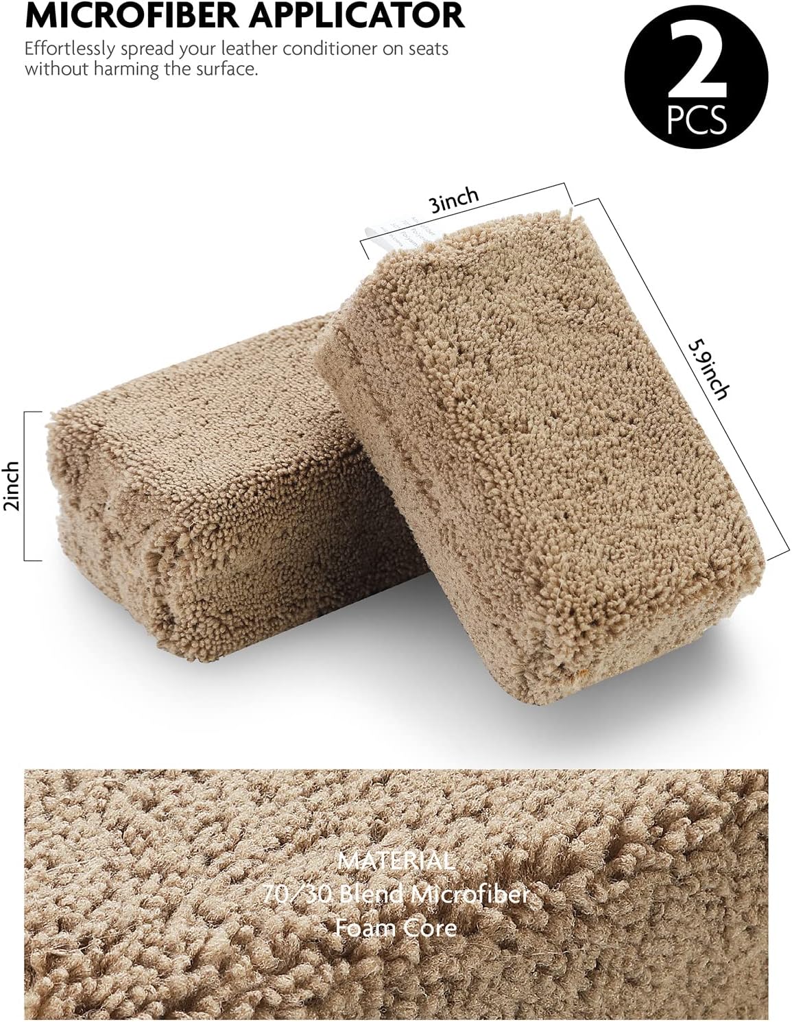 • [ Premium Grade Microfiber Applicator] The microfiber applicator pad is perfect for conditioning and protecting leather seats and upholstery in any fine vehicle. Made with 70/30 blend microfiber that stay soft through dozens of wash and dry cycles. With a thick foam core inside that feels plush and firm in the hand, and ensures even coverage over leather