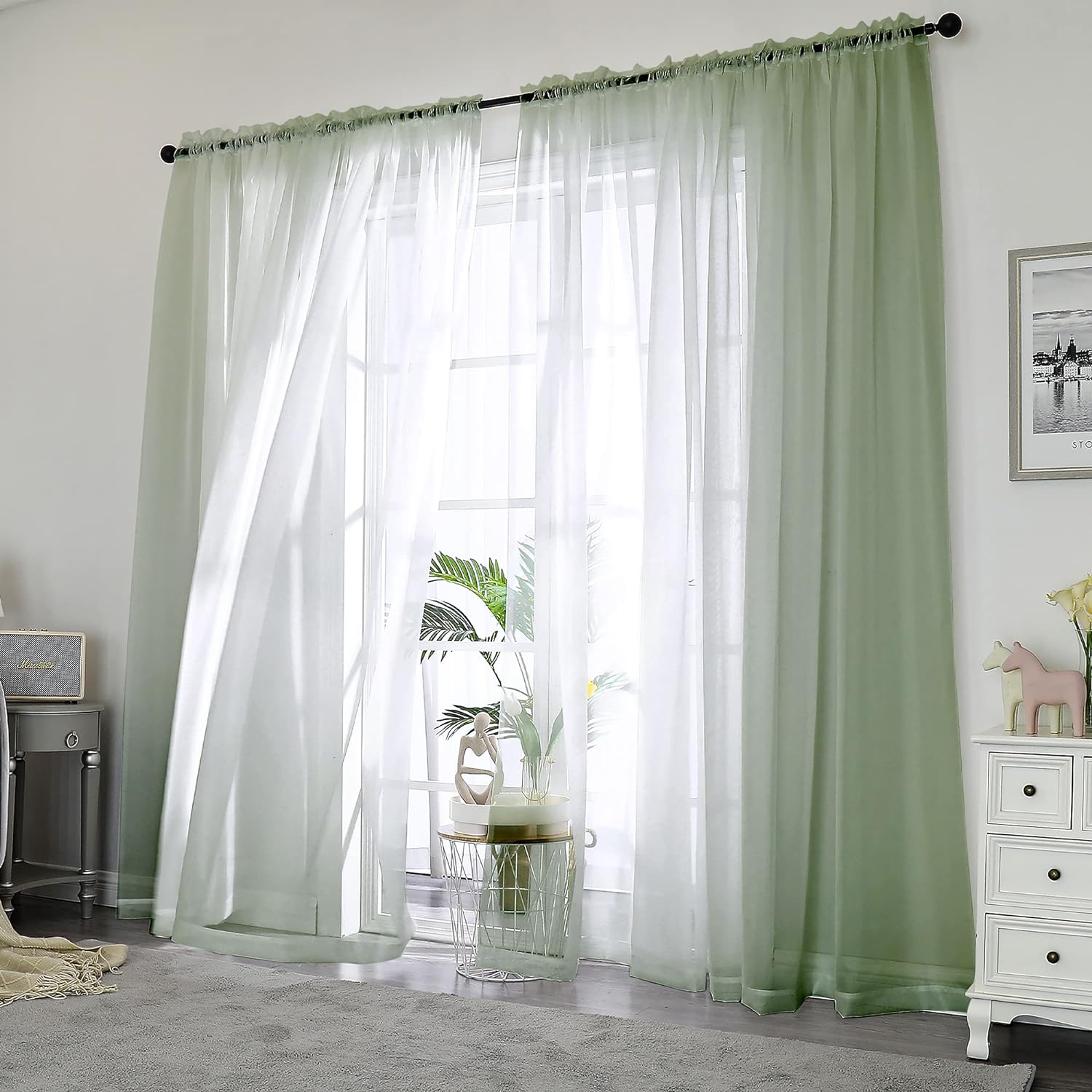 Chyhomenyc Sage Green Sheer Curtains 84 inches Long 2 Panels, Light Filtering Soft Window Treatment Voile Drapes for Living Room Bedroom, Each 42Wx84L,2 PCS