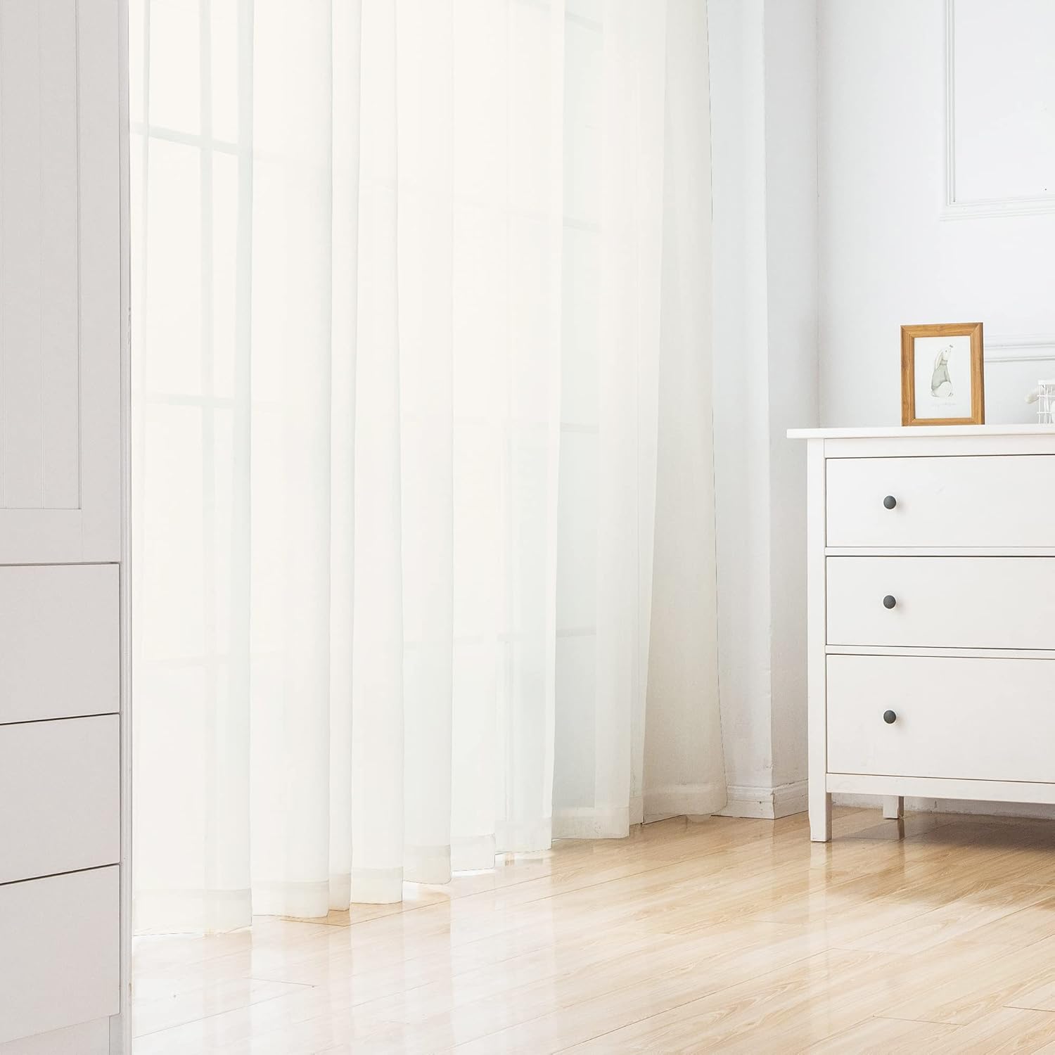 Chyhomenyc Sheer Curtains 120 Inch Extra Long, 2 Pieces, Rod Pocket Top Soft Voile Texture Window Draperies Lightweight & Airy Panels for Living Room/Bedroom, Each 42W x 120L inches, Ivory