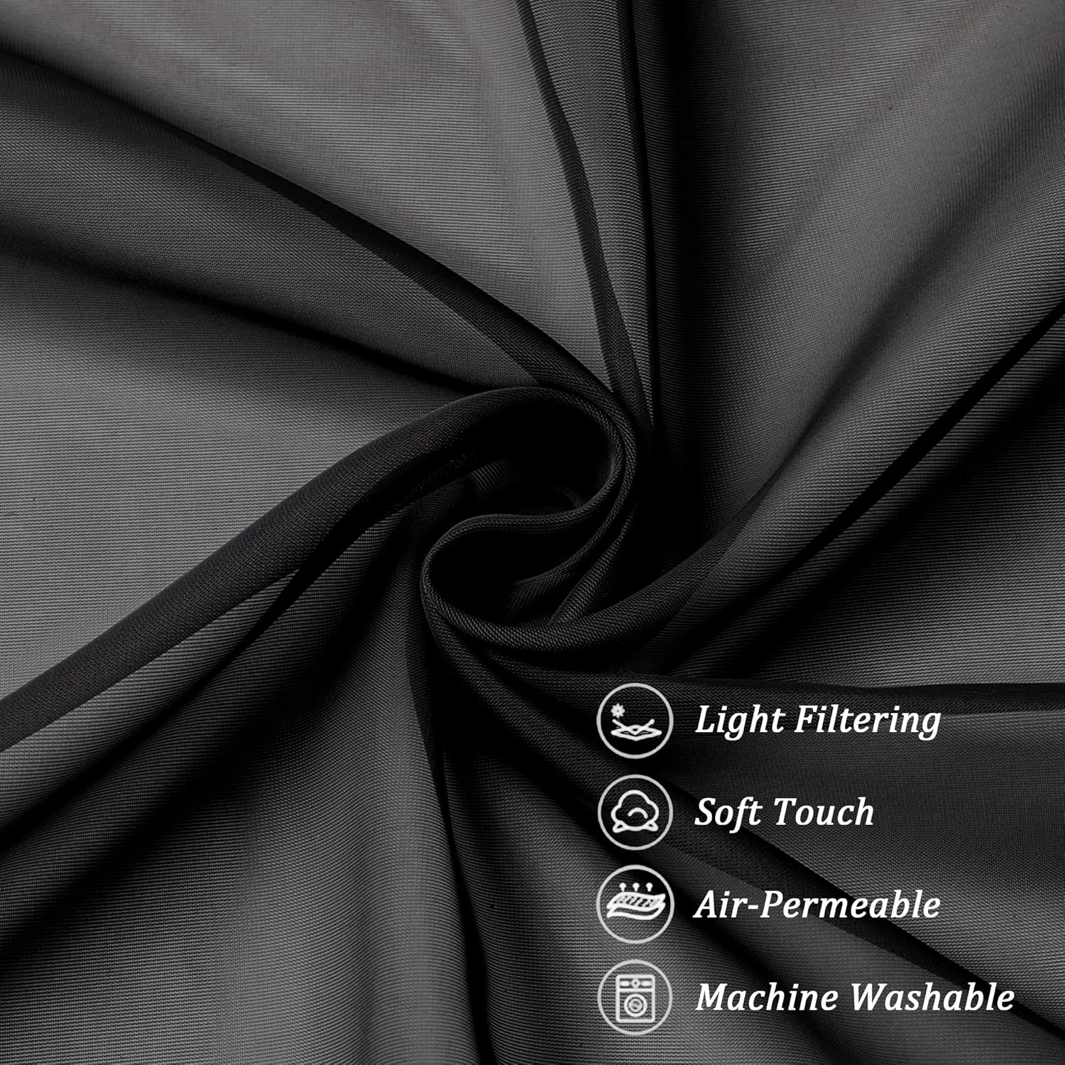 Chyhomenyc Black Sheer Curtains 84 Inch Length 2 Panels Set, Light Filtering Solid Elegant Rod Pocket Voile Window Drapes for Bedroom Living Room, Each 42Wx84L Inch, 2PCS, 7 Feet Long