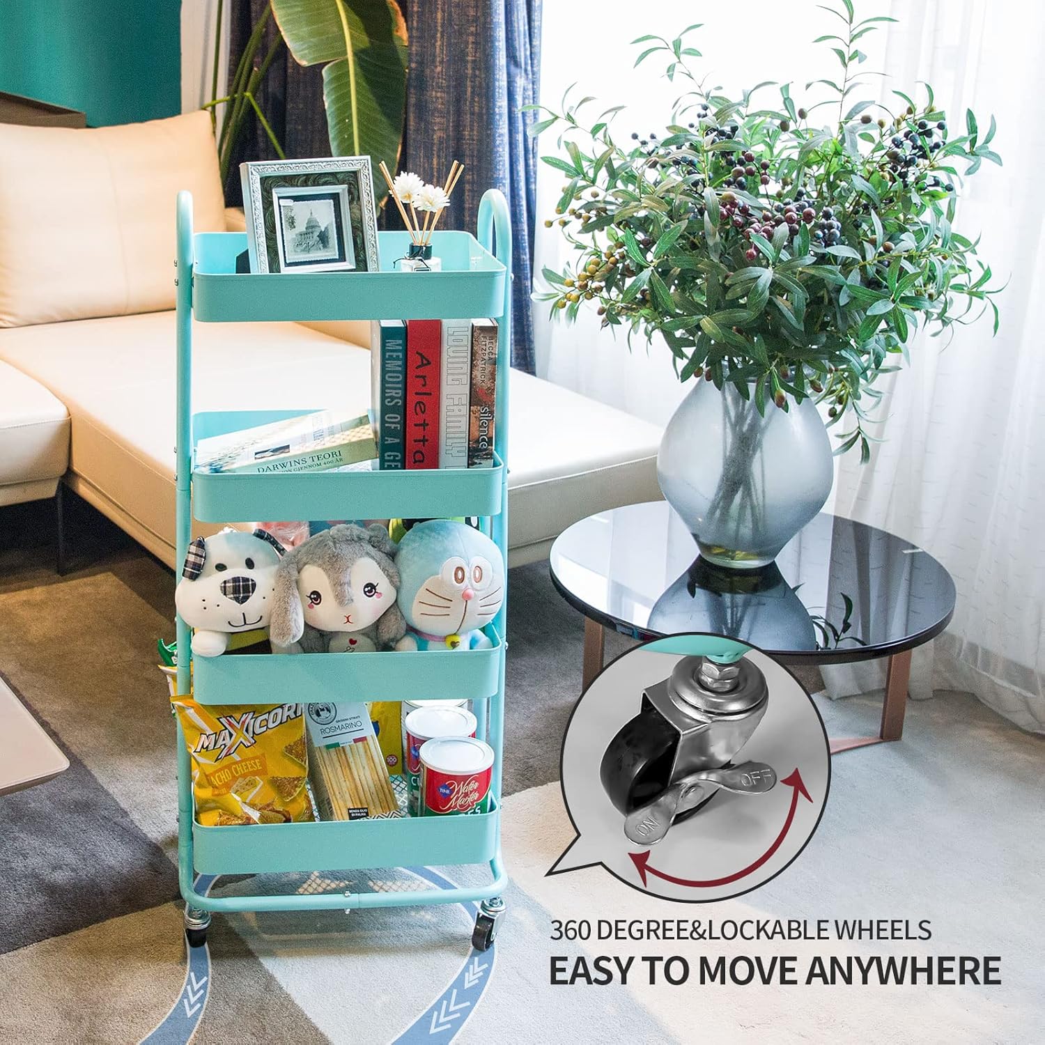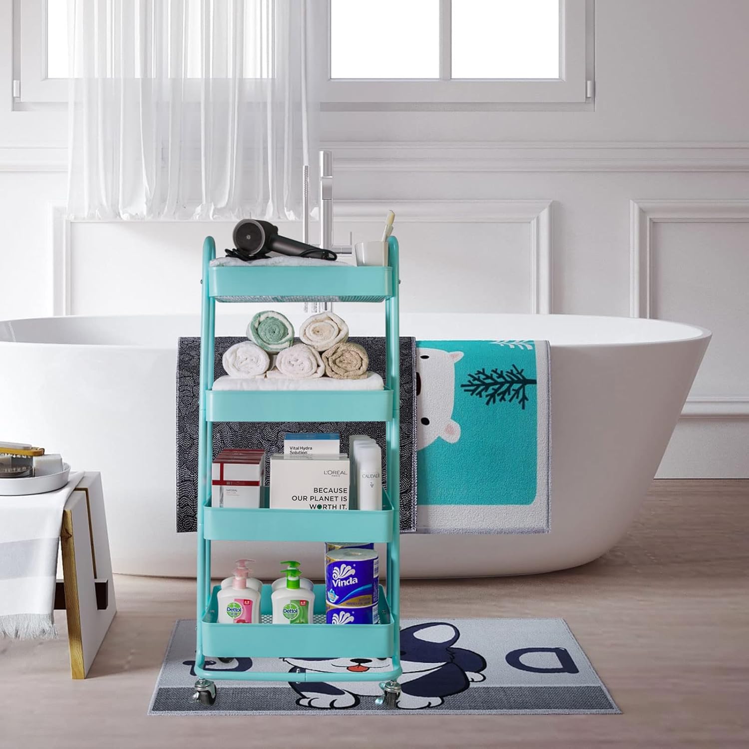 • [Multifunctional Storage Cart] This 4 tier rolling utility cart is easy to store and transport. It can be used as a tools cart, service cart, book cart, art cart, organization rack and more. Suitable for your office, bedroom, kitchen, bathroom, living room, baby room, laundry room, pantry, studio, classroom, and craft areas.