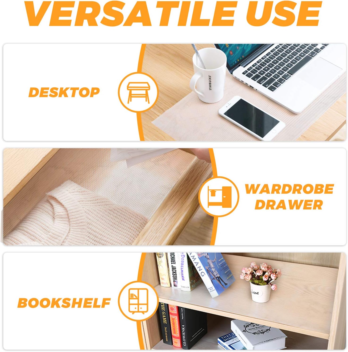• MULTIPLE USAGES CABINET LINERS: This drawer liners for dresser can be cut into different shapes and sizes, to fit in kitchen cabinet, shelves, drawers, cabinets, kitchen furniture, dresser,wardrobe, refrigerator, office desk and counter tops or any other furniture where you want to create an extra durable solid surface
