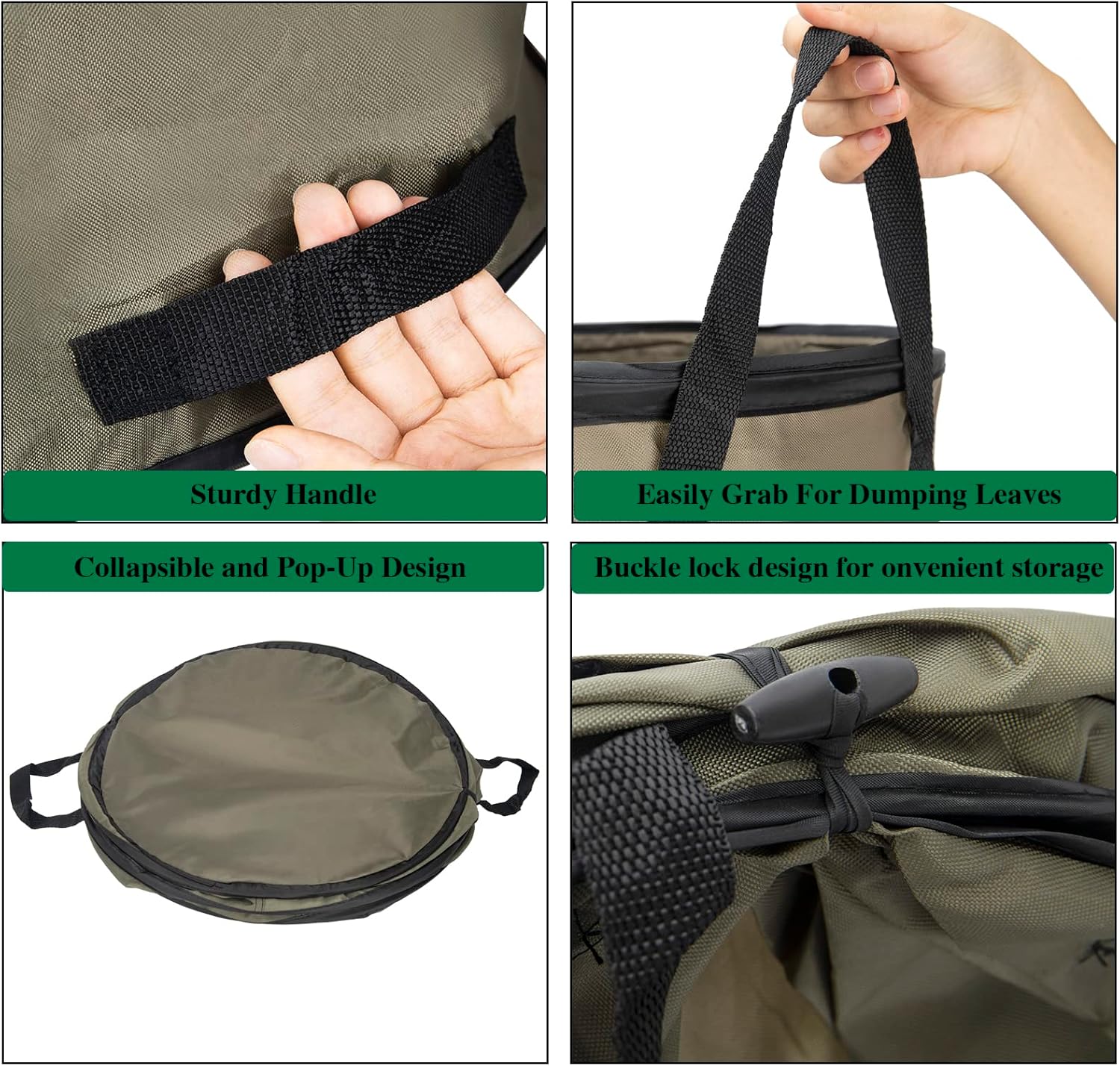• 【Collapsible and Pop-Up Design】 Collapsible lawn and leaf waste bag collapses quickly and easily for compact storage when not in use and expands quickly and easily when needed. Pop-Up Trash Can has 2 carrying handles on top for easy carrying and dumping. 2 strong tough handles that allows you easily grab for dumping leaves. Flexible and hard spiral spring spine, which can be automatically ejected, and it can also be folded for quick and easy storage, Does not take up space.