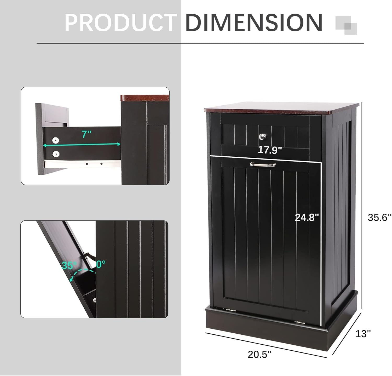• 🏡【Durable and Stable】 35.6 "H x 20.5 "L x 13 "W cabinet support is stable enough to hold up to a 35 lb (ca. 16 kg). Our Trash can, a perfect match for a 10-gallon trash can(trash can not included). Rubberwood top surface provides extra cutting space, and can easily withstand even a microwave and coffee maker