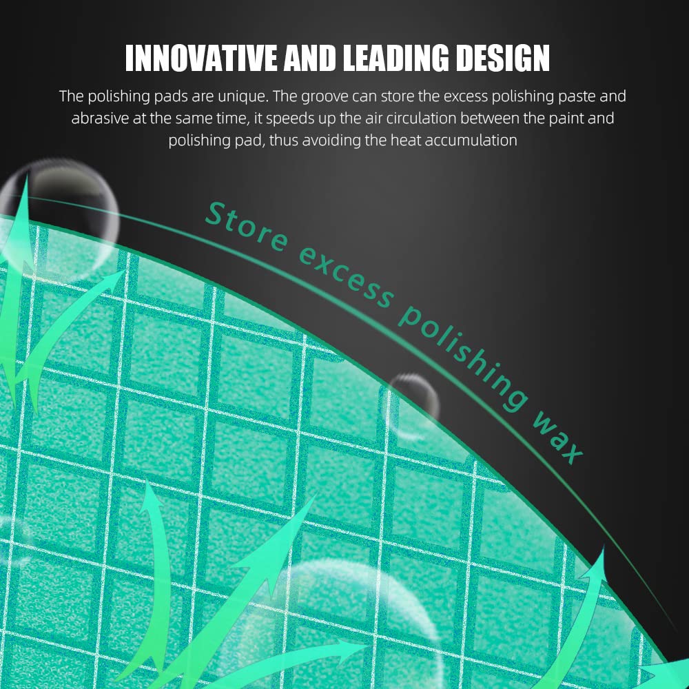 • [Innovative design] The groove can store excess polishing paste and abrasives; at the same time, it speeds up the air circulation between the paint and the polishing pad and avoids the accumulation of heat;