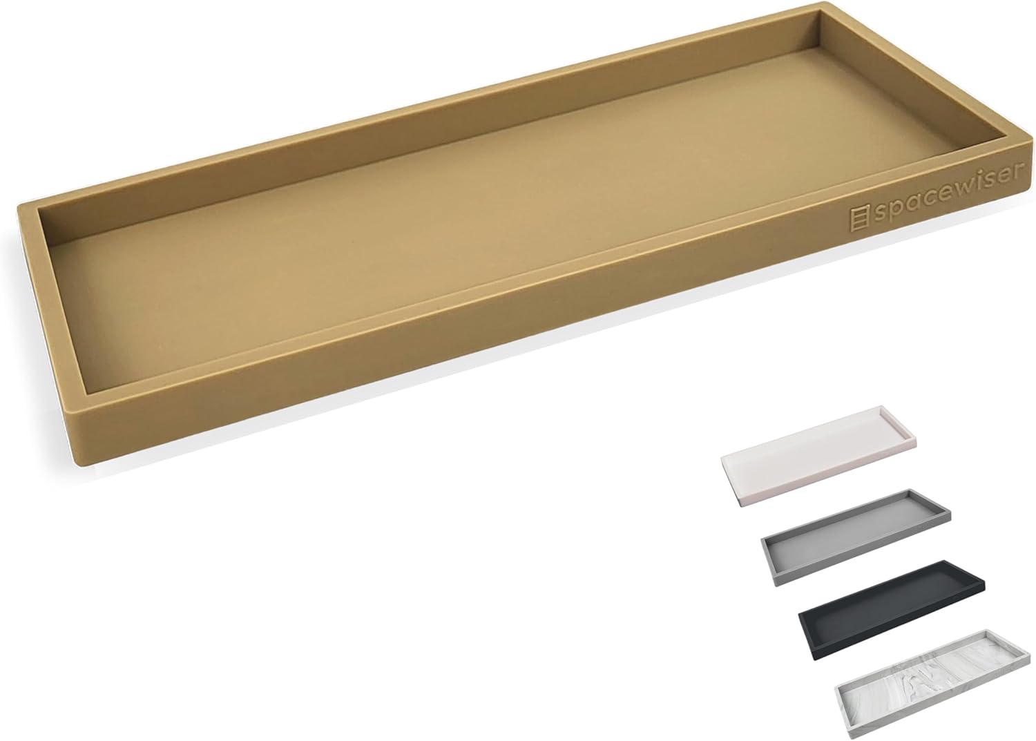• Use It Anywhere – Choose the endlessly useful and aesthetically pleasing tray that works anywhere. The Spacewiser Original Silicone Tray is perfect as a bathroom tray, vanity tray or kitchen sink tray. Spacewiser Original Silicone Trays are made of premium food grade silicone, without the addition of potentially unsafe thickening or hardening agents. They’re shatterproof, slip resistant, dishwasher safe, heat resistant to 425F, and their texture provides a gentle landing for your items.