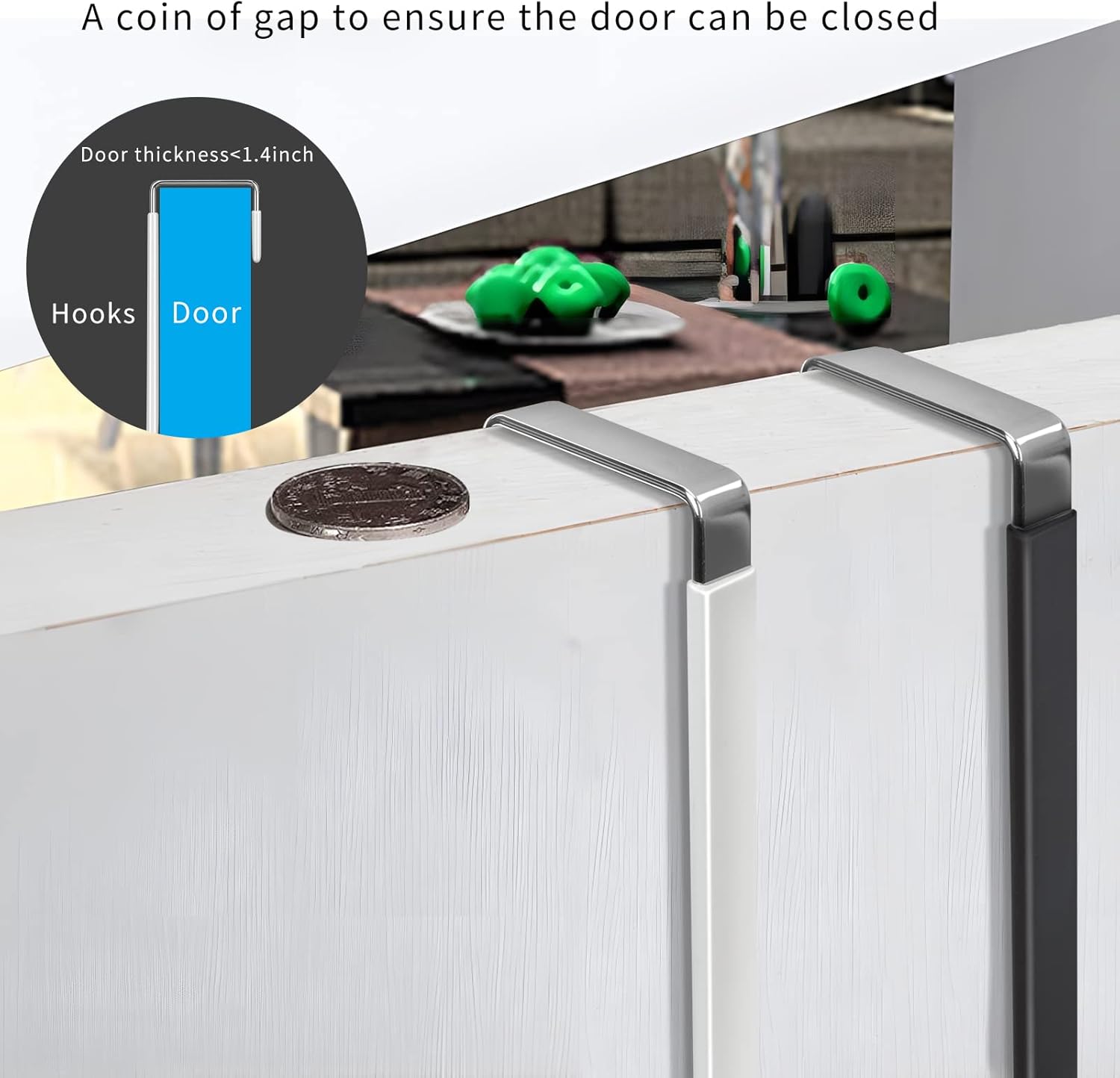 • Wide Application: The over the door hooks can be applied to most door in your house, fit doors of living room, bathroom, shower room, bedroom, kitchen or closets. Prefect for hanging clothes, towels, hats, coats, bags, etc. The hooks convert your doors into a convenient storage space and keep your room organized without messy