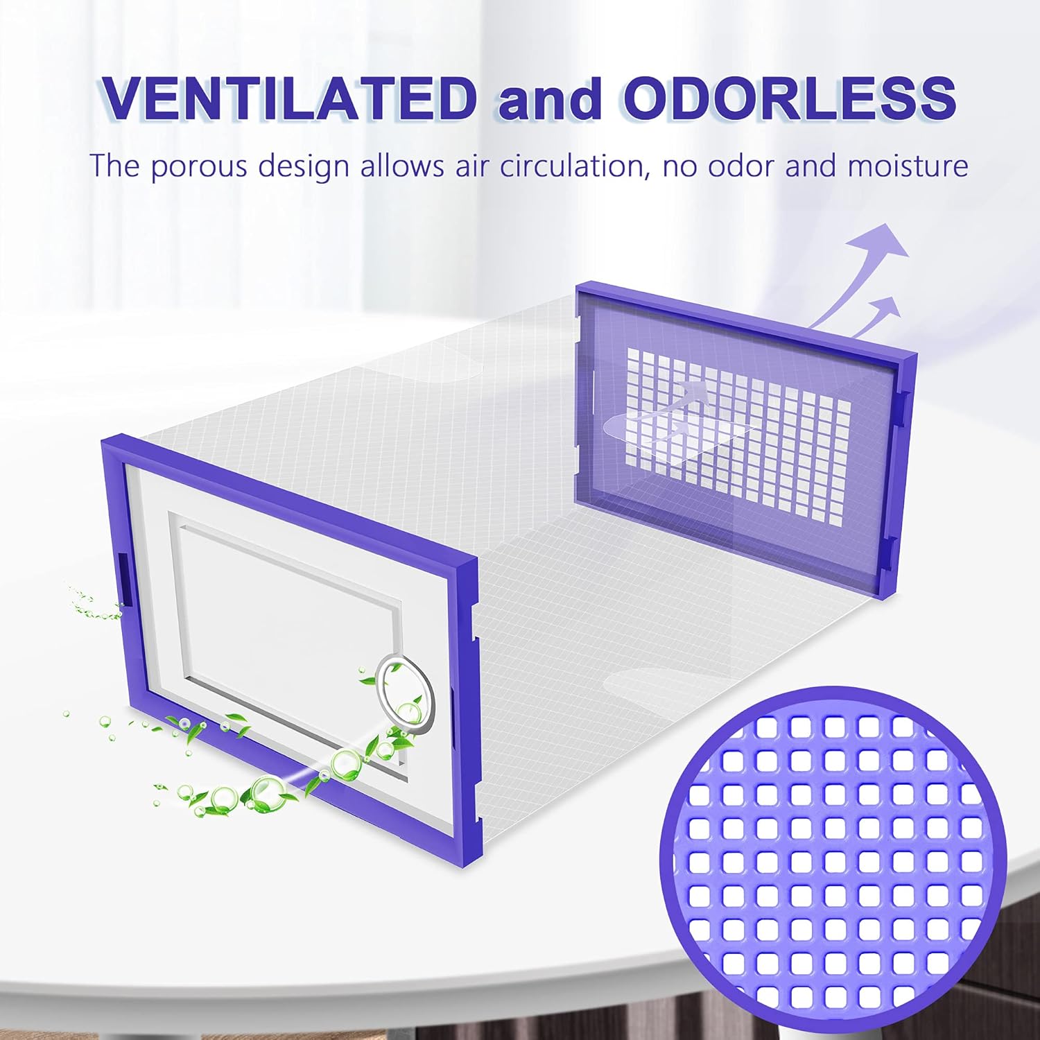 Kuject Shoe Organizers Storage Boxes for Closet, 12 Pack Clear Plastic Stackable Storage Bins with Lids, Under Bed Shoe Containers for Entryway, Drop Front, Fit up to Women's Size 10,Purple