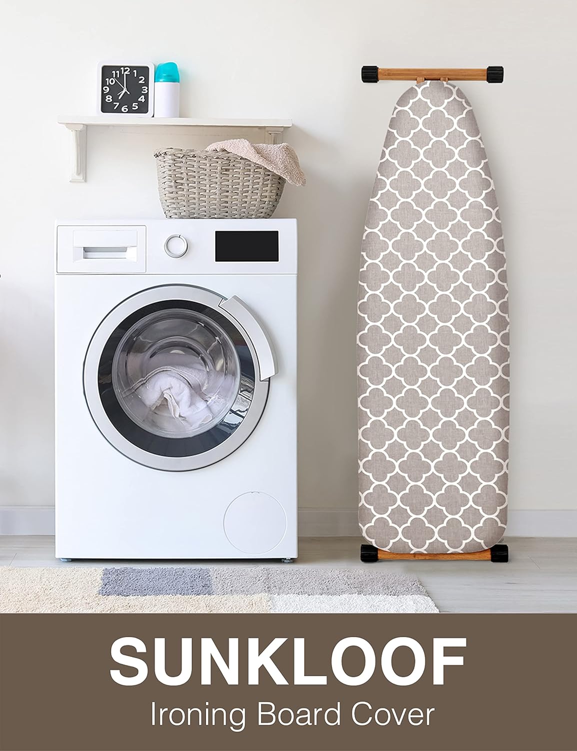 • ♥ PREMIUM AND ECO-FRIENDLY MATERIAL: Sunkloof ironing board cover is made of 4 layers- anti stain&scorch coated surface, 100% natural cotton, eco-foam layer and thick felt pad. All materials are eco-friendly . Compared with others, SUNKLOOF is more durable, and makes the boring ironing work easy and enjoyable