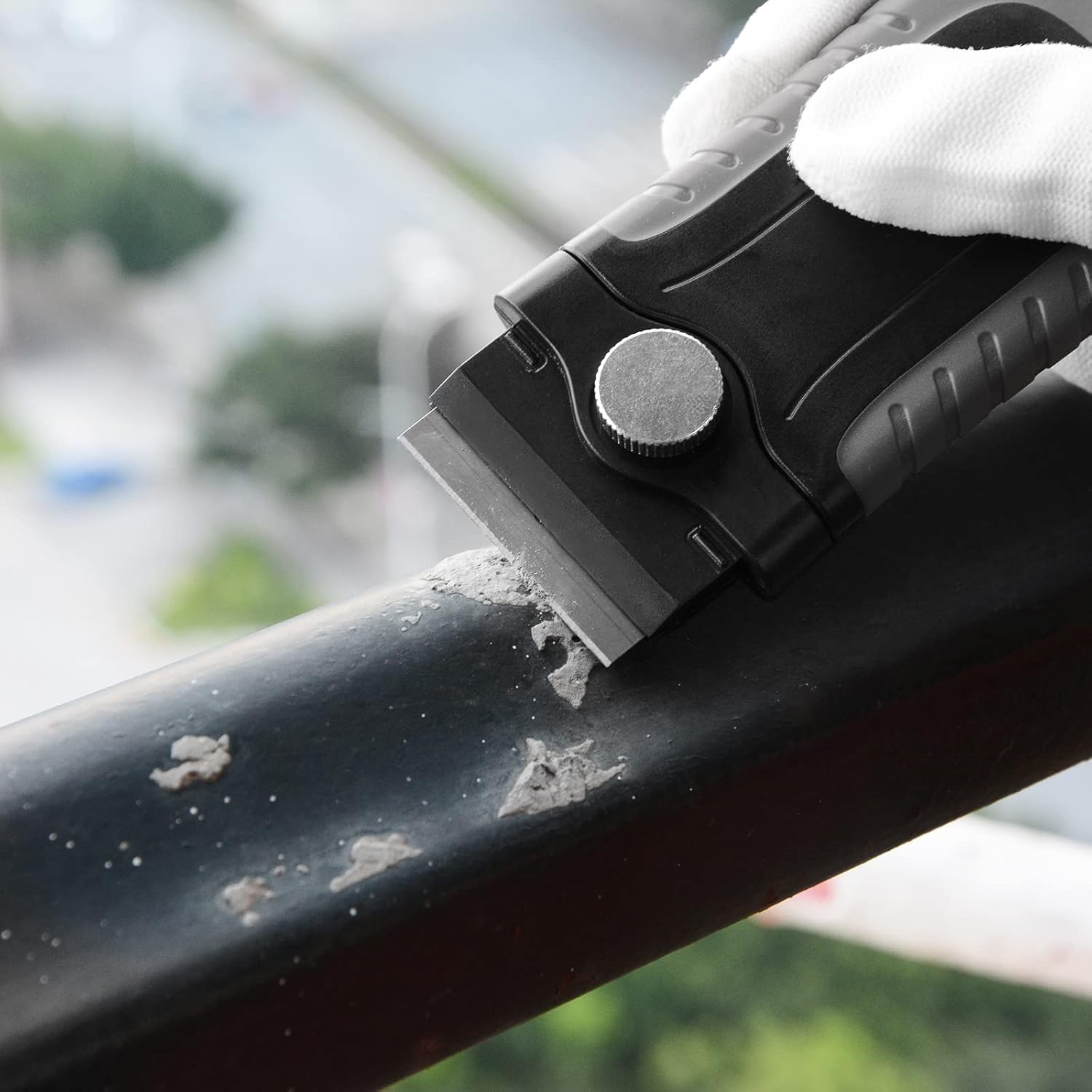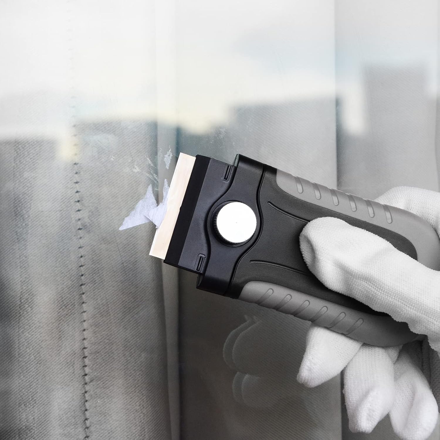 • Razor Blade Scraper Tool with stainless razor blades perfect for use on glass, ceramic, and induction stovetops and cooktops, and is great for removing burnt food and gunk, as well as scraping off in the bathroom.And also effectively for removing a variety of other materials, including window paint, shims, paints, stickers, coloring film residues, wallpaper, and borders around the house