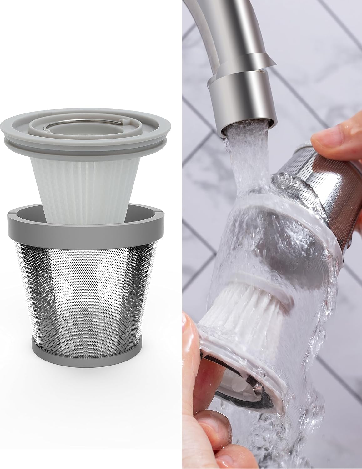 • WASHABLE DUAL-FILTRATION: The stainless steel filter and HEPA filter are washable and reusable.