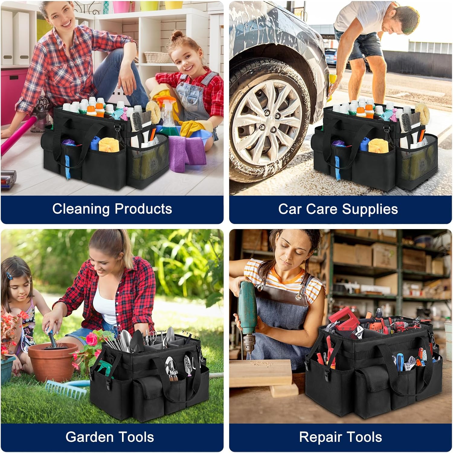 Cleaning Caddy Bag,Large Cleaning Supplies Organizer with Handle for Housekeepers, Black