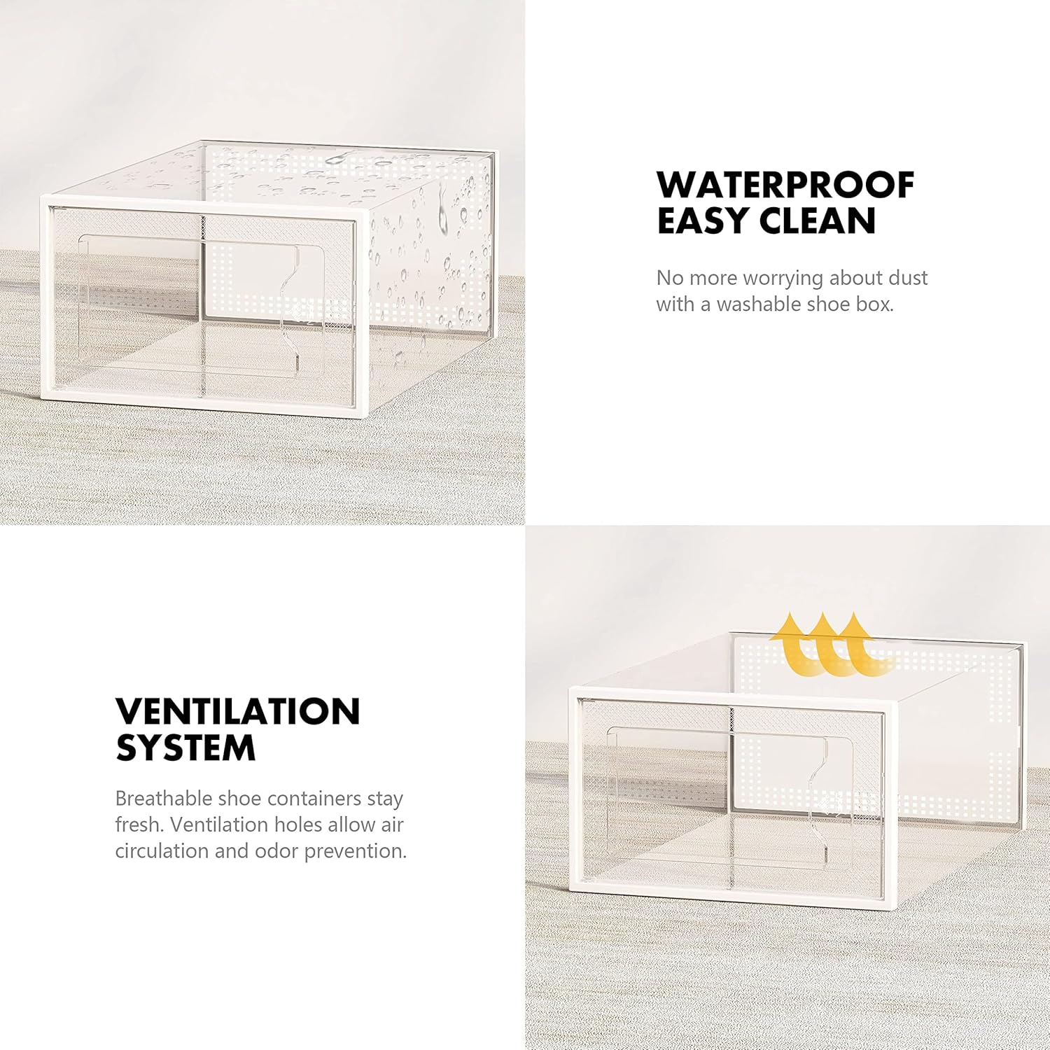 • Sturdy yet Breathable: Made of sturdy and premium plastic. Large rear ventilation holes ensure air circulation and odor prevention, breathable shoe containers stay fresh. Easy daily care – clean with mild soap and water.