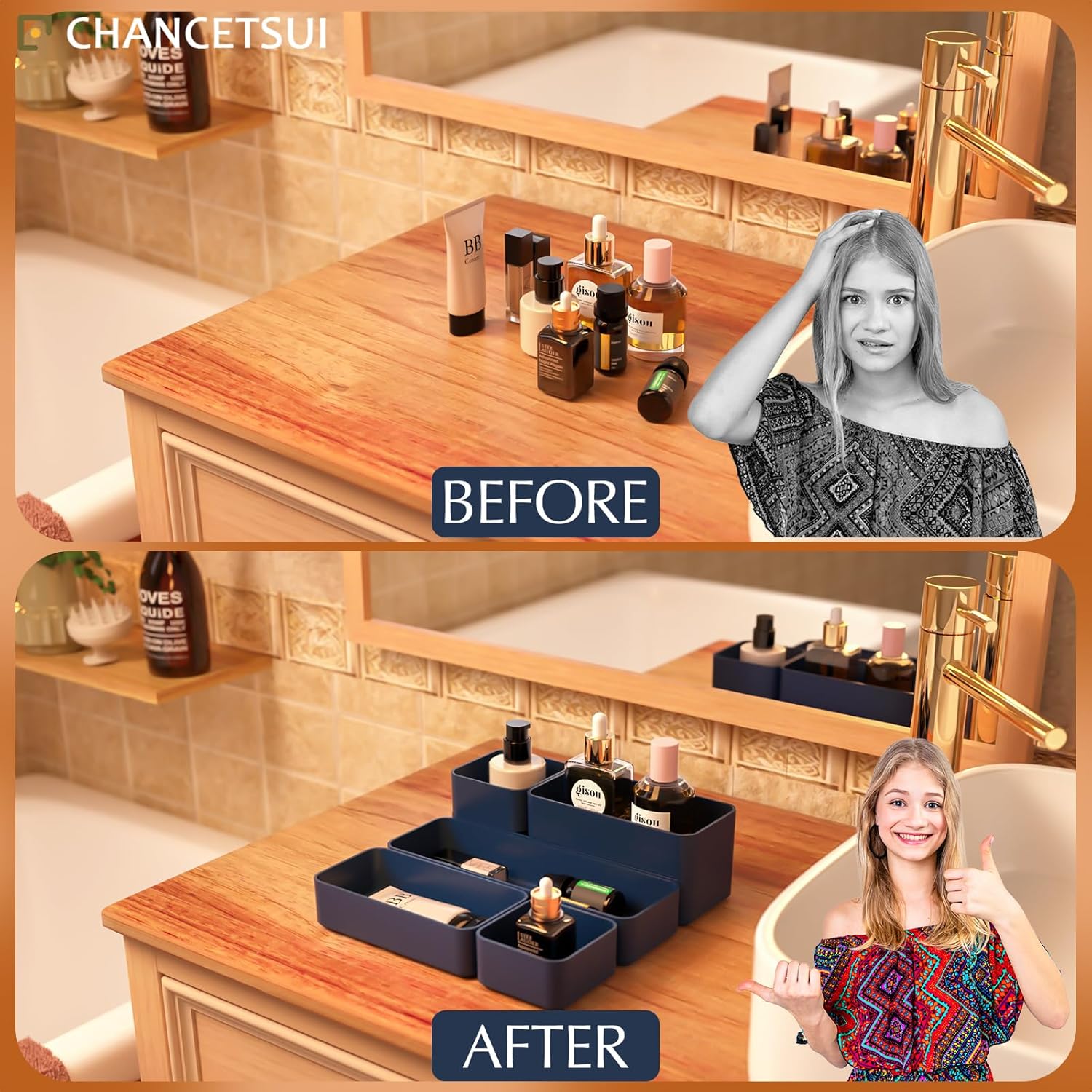 • [ LONG LASTING ] Made with quality plastic, a light weighted and easy to clean material that ensure the trays are built to last. The material makes the trays hard to break, keeping the organiser nice and steadily stacked.Customize your layout with individual bins in a bathroom, dresser, vanity, or desk.
