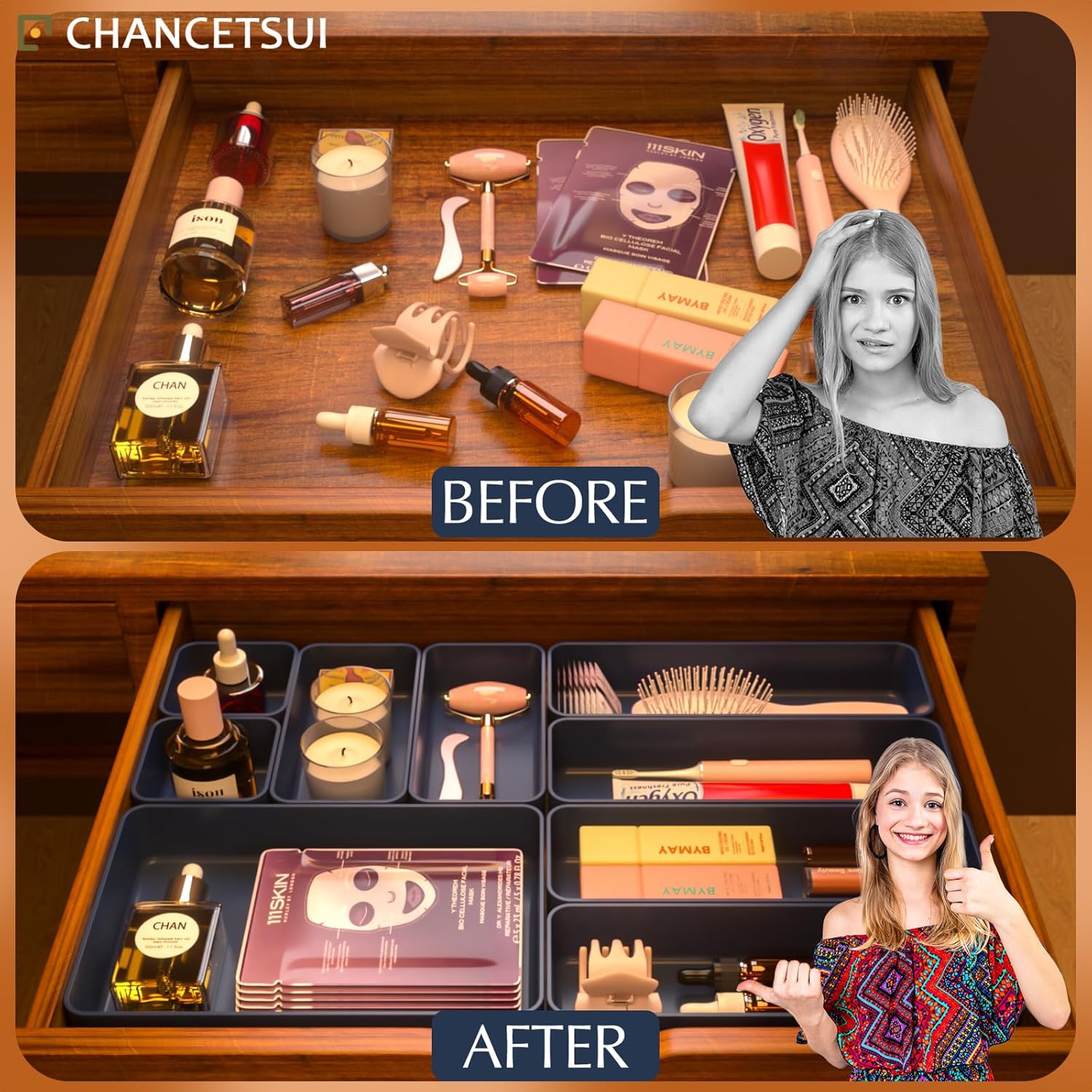 • 【Sturdy and Durable】The desk drawer organizer trays set are made of durable PET plastic, ensuring a long life of use. Drawer organizer bins are break-resistant and could accommodate different items keeping the organiser nice and steadily stacked.