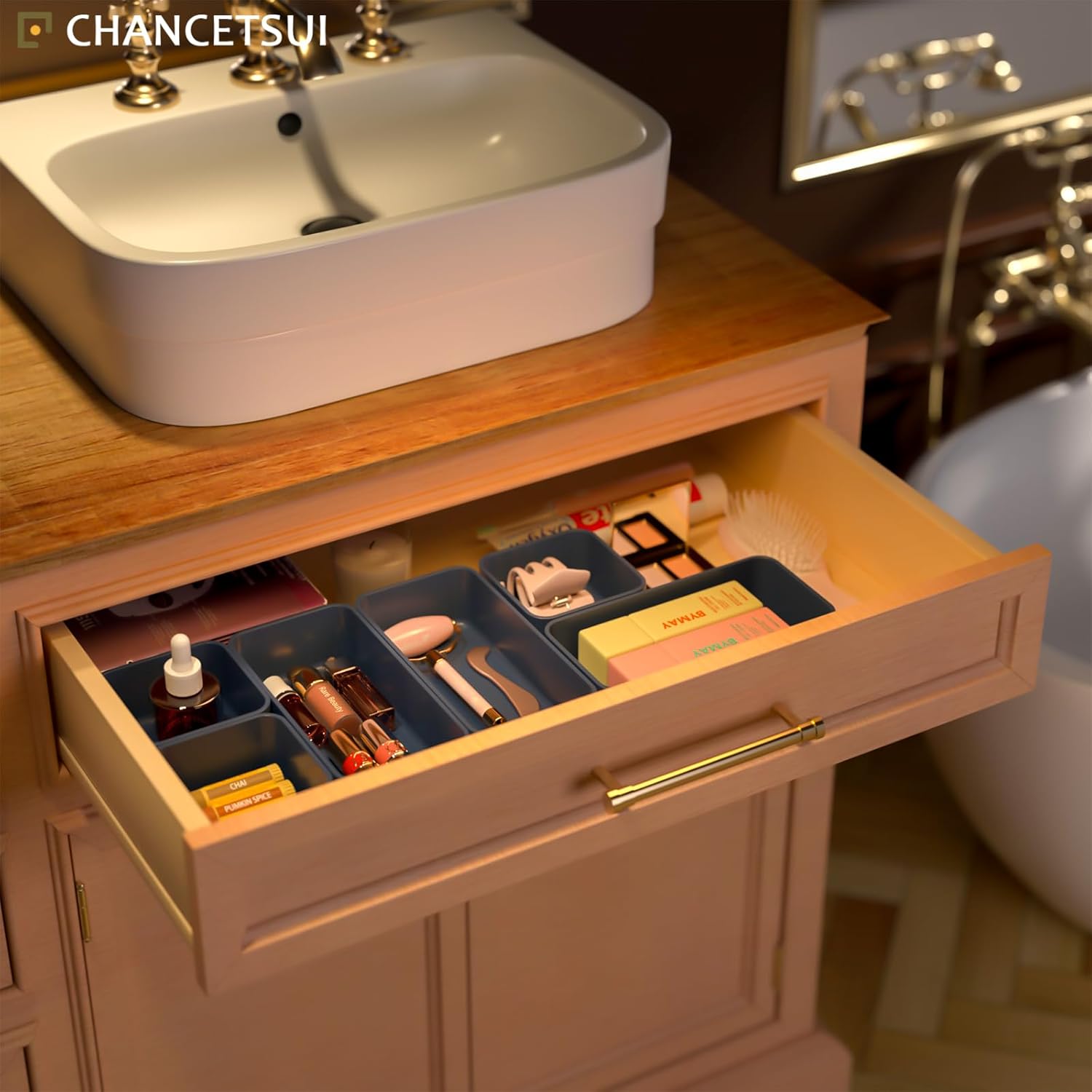 • 【Customize and Stackable】 Individual Plastic Storage Bins can be used to separate your messy drawer and fit all kinds of drawers, such as vanity, bathroom, kitchen, and office drawers. You can customize the layout of the drawer organizers to suit any specific needs.
