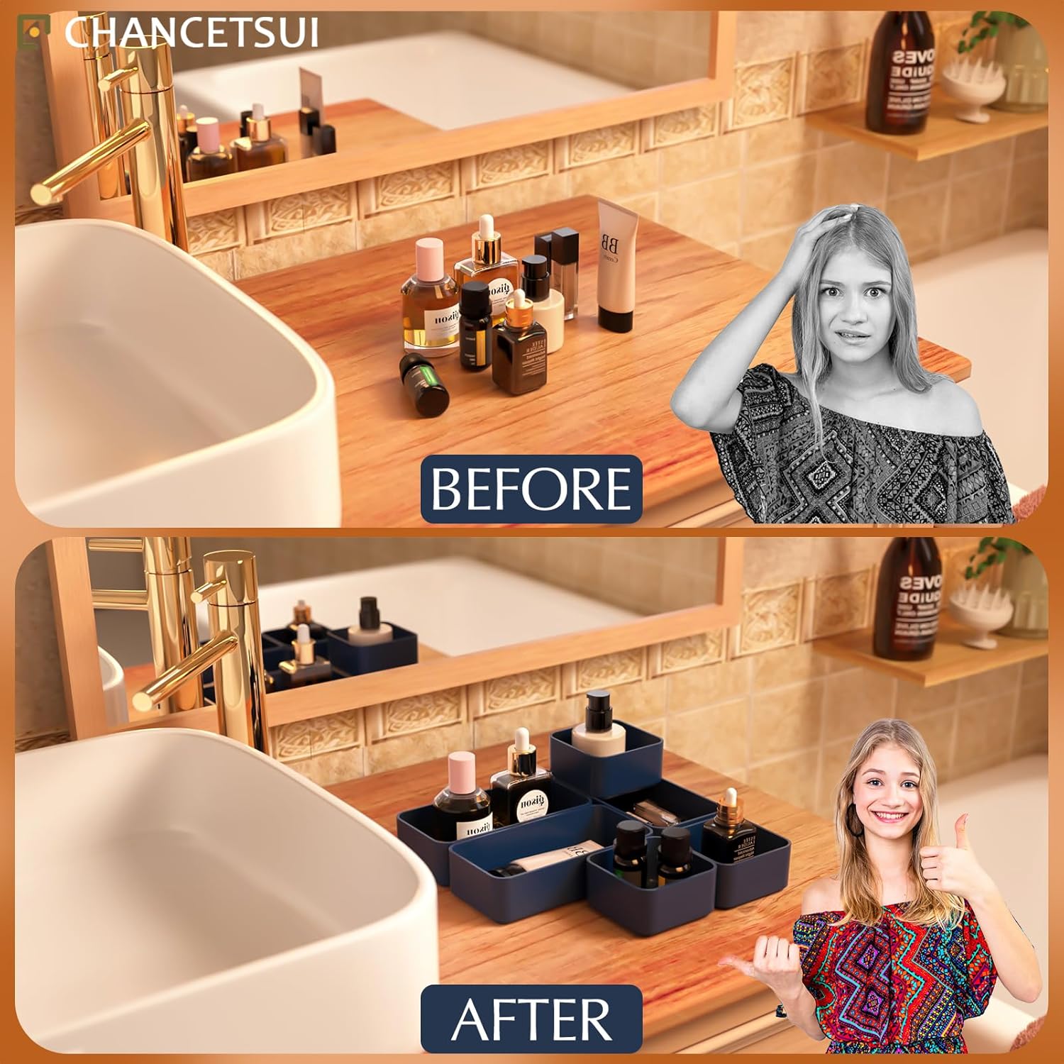 • 【Stackable and Space Saving】These storage bins fit any part of your home. Suitable for use in different drawers to keep your desktop neat and tidy. Offer a generous capacity for storing toiletries, hair accessories, cosmetics, medicine, toothpaste, office supplies, craft supplies, nail polish, jewelry, etc.