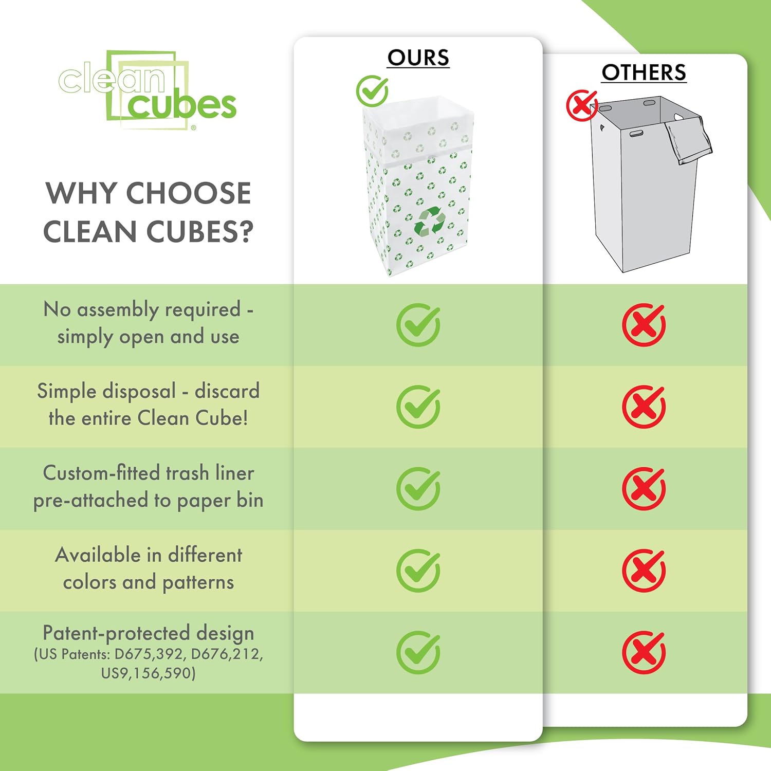 • ✅【VALUE 3-PACK】Includes 3 Clean Cubes per package — each bin comes with 3 custom-fitted trash liners. 30-gallon capacity (17” x 14” x 30”).