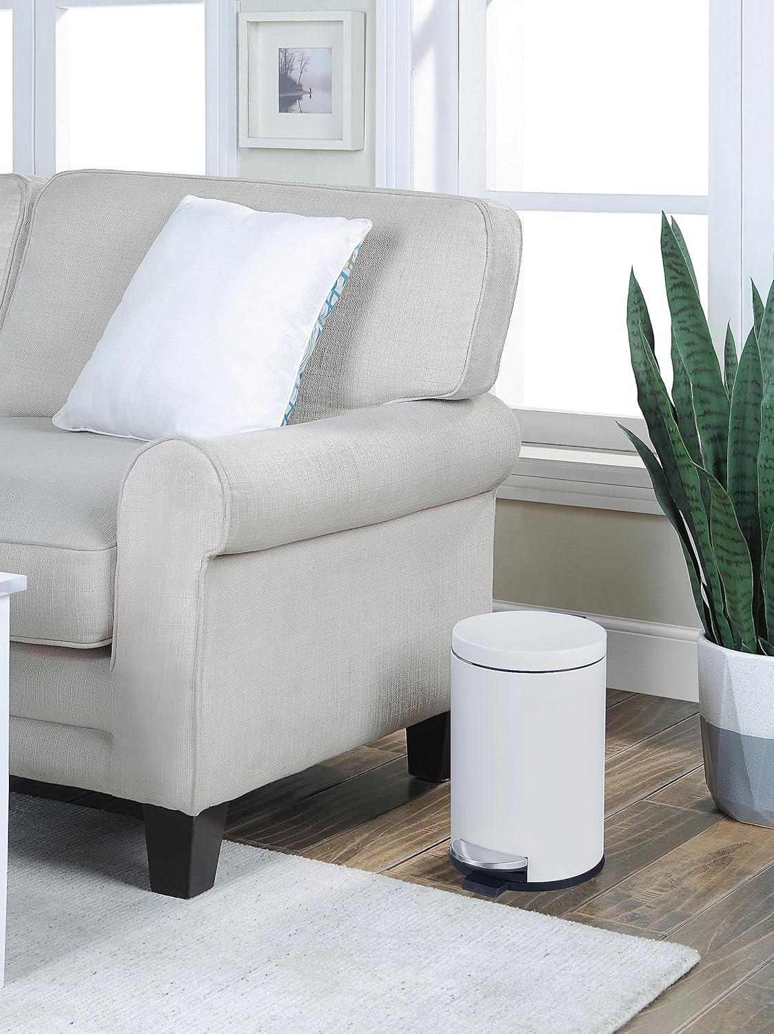 SunnyPoint 4.5 Liter(1.2 Gallon) Small Round Trash Can with Plastic Inner Bucket; Bathroom, Office, Kitchen and Bedroom Step On and Slow Close (WHT)