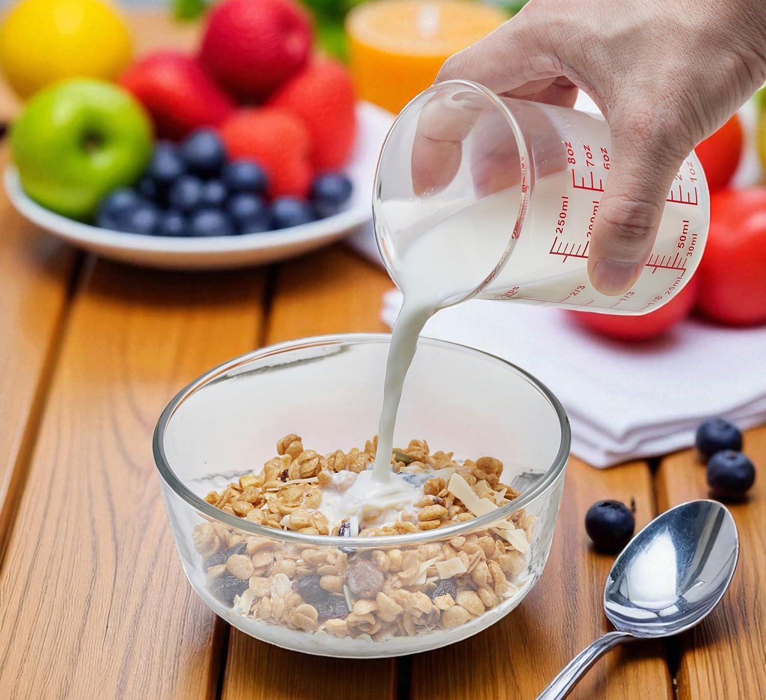 • Essential Kitchen & Bar Tool – This 1 cup glass measuring cup (8oz/250ml) with V-shaped spout is perfect for precise liquid measuring in cooking, baking, or cocktail mixing. Lightweight yet durable, it’s ideal for daily kitchen and bar use