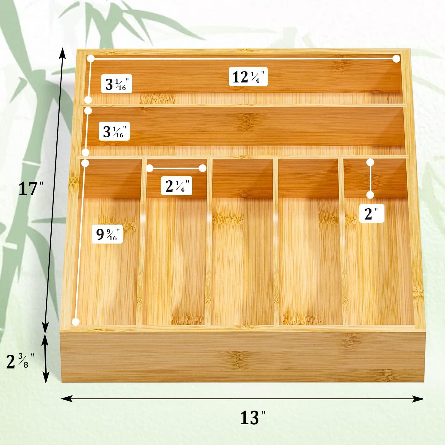 • 【Perfect Silverware Organizer Size】Please Measure Your Drawer Size Carefully Before Ordering to Avoid Any Inconvenience. The overall size of the silverware organizer is about 13”(W) x 17”(L) x 2.4”(H); due to handmade, please allow a slight error within 1/2 Inch.