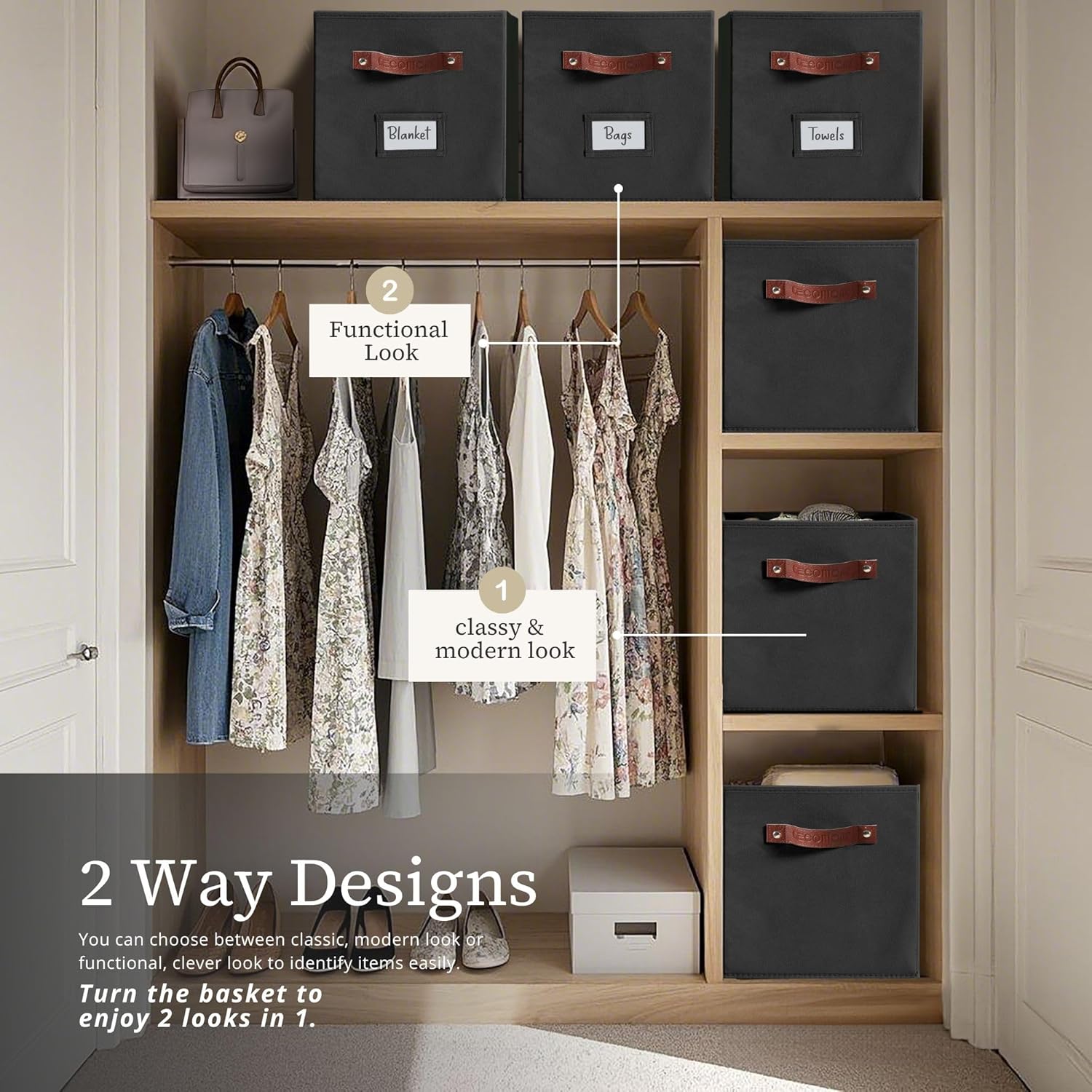 DECOMOMO Storage Cubes, 13x13x13 Storage Cube Bins with Labels, Fabric Organizer Bins (13" / 6pcs, Black)