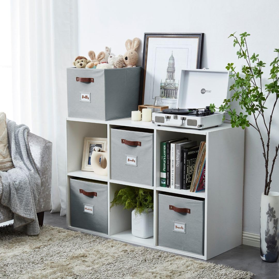 DECOMOMO Storage Baskets, 13x15x13 Storage Cube Bins with Labels for Organizing Shelves Kallax (Kallax / 4pcs, Grey)