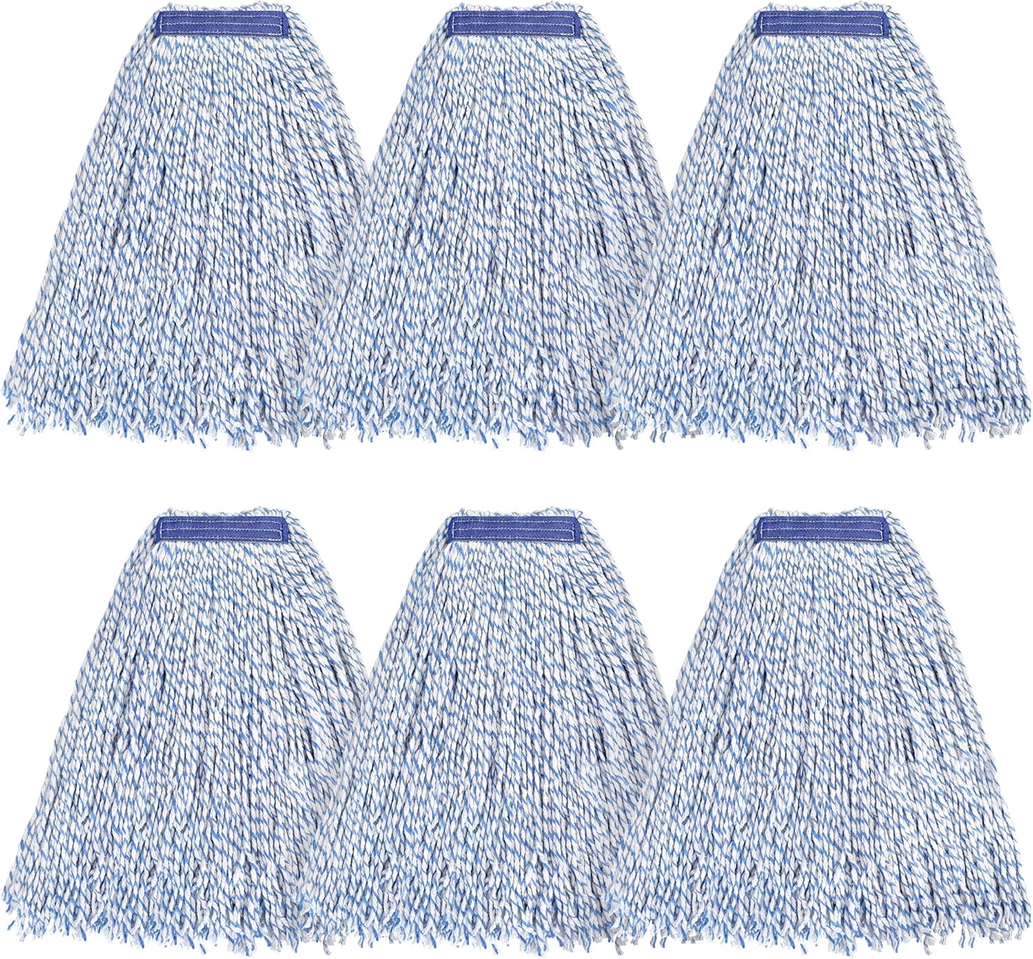 MATTHEW CLEANING Looped-Open Cotton Wet Mop 1.25'' Universal Headband Heavy Duty Commercial Mop Head Replacement for indoor and outdoor Use,Grease Stain Floor Cleaning String Mop Head Refill Pack of 6