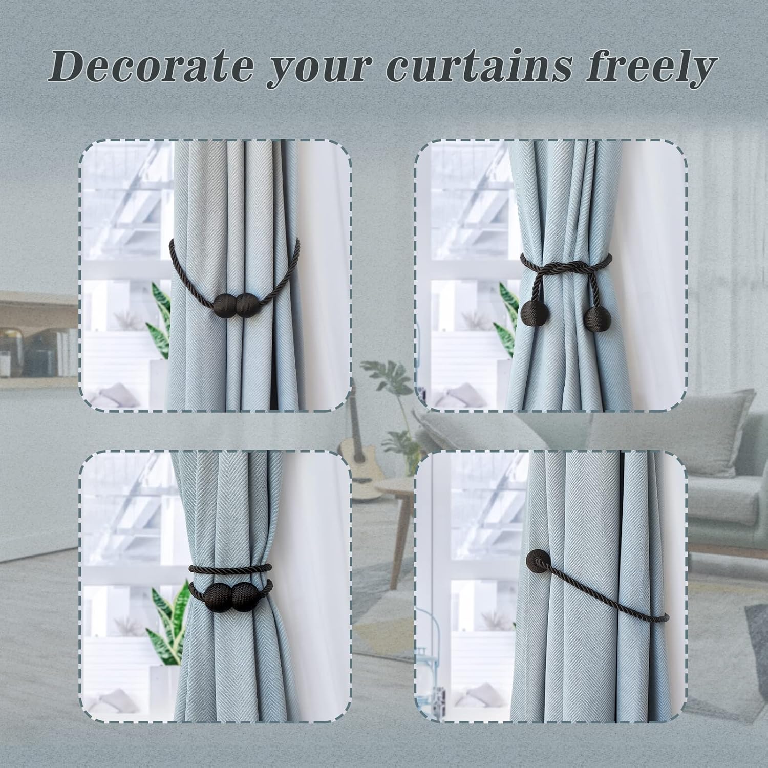 • [Upgrade Powerful Magnetic] Our magnetic curtain tiebacks magnets use high-end new imported nickel-plated magnets, with strong corrosion resistance and durability, more magnetic than ordinary magnetic curtain tiebacks, and do not rust and not lose color. The rope of curtain tie adopts upgrade thickened solid polyester yarn, which is not only durable, but also not easy to wear or pilling.