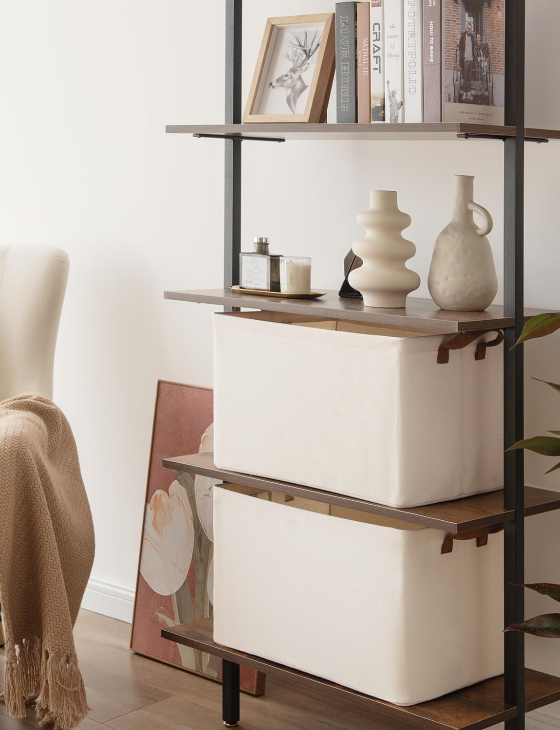 StorageWorks Storage Bins, Fabric Storage Bins for Shelves, Extra Large Storage Baskets with Metal Frame, Closet Baskets and Bins with Handles, Jumbo, Natural Color, 2-Pack
