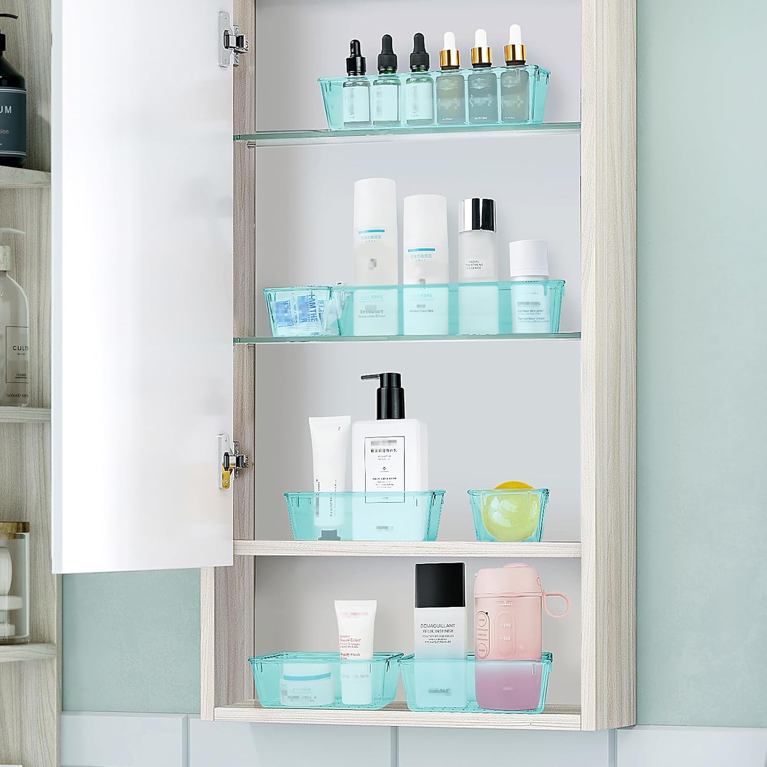 • 4 Combinations of Different Sizes: A set of cabinet organizer includes 25 storage bins of 4 different sizes. Includes: 9 x 6 x 2 inches (3pcs), 9 x 3x 2 inches(6pcs), 6 x 3 x 2 inches(8pcs), 3 x 3 x 2 inches(8cps). You can customize the combination to customize your own drawers.