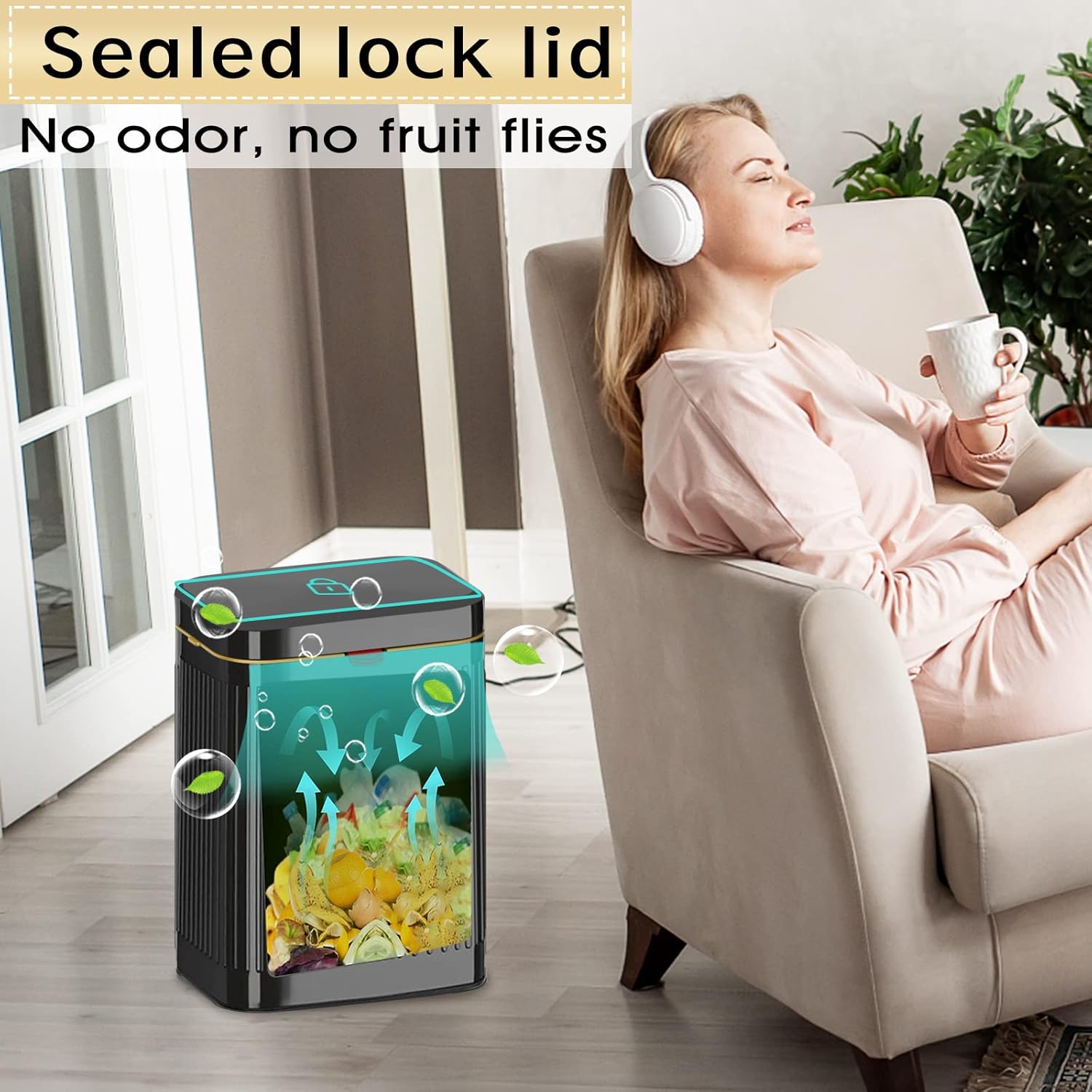 • Durable Material & Odor Sealing: GloDeals trash can with lid crafted from premium stainless steel and high-density plastic, effectively isolating odors and preventing fruit flies. Rust-proof, crack-resistant, and fingerprint-proof, this countertop compost bin ensures a clean and tidy kitchen environment.