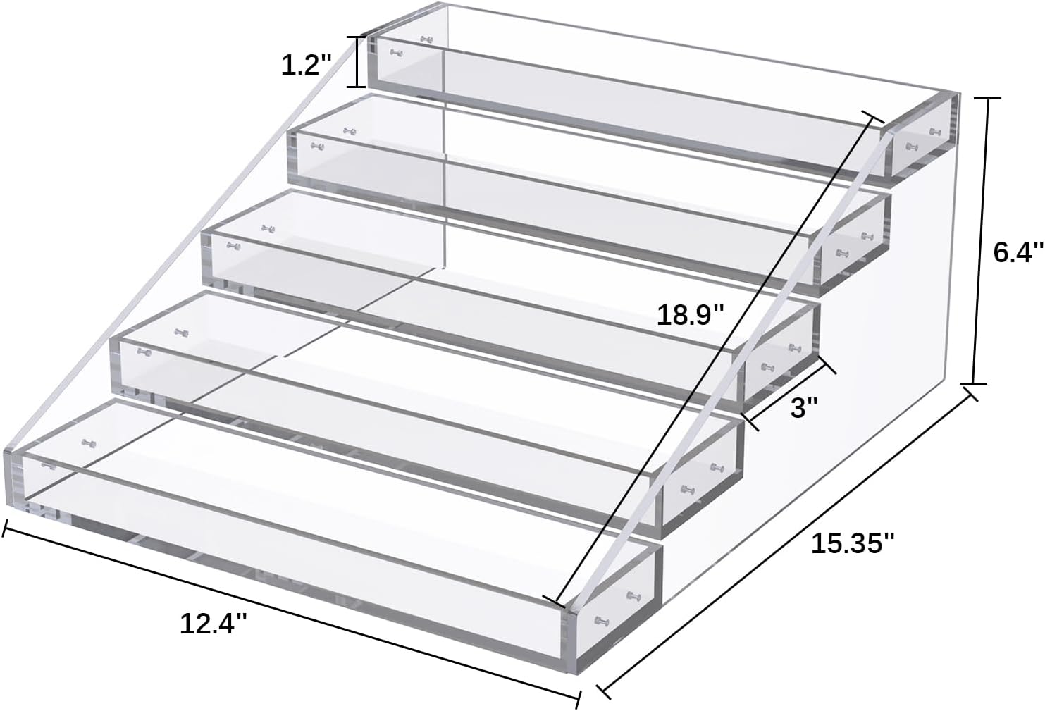 PMMASTO Widen Tiered Spice Rack, Seasoning Organizer, Clear Acrylic Vertical Shelves Can Organizer for Countertop, Cabinet, Pantry, Kitchen Organization and Storage - 5 Tier