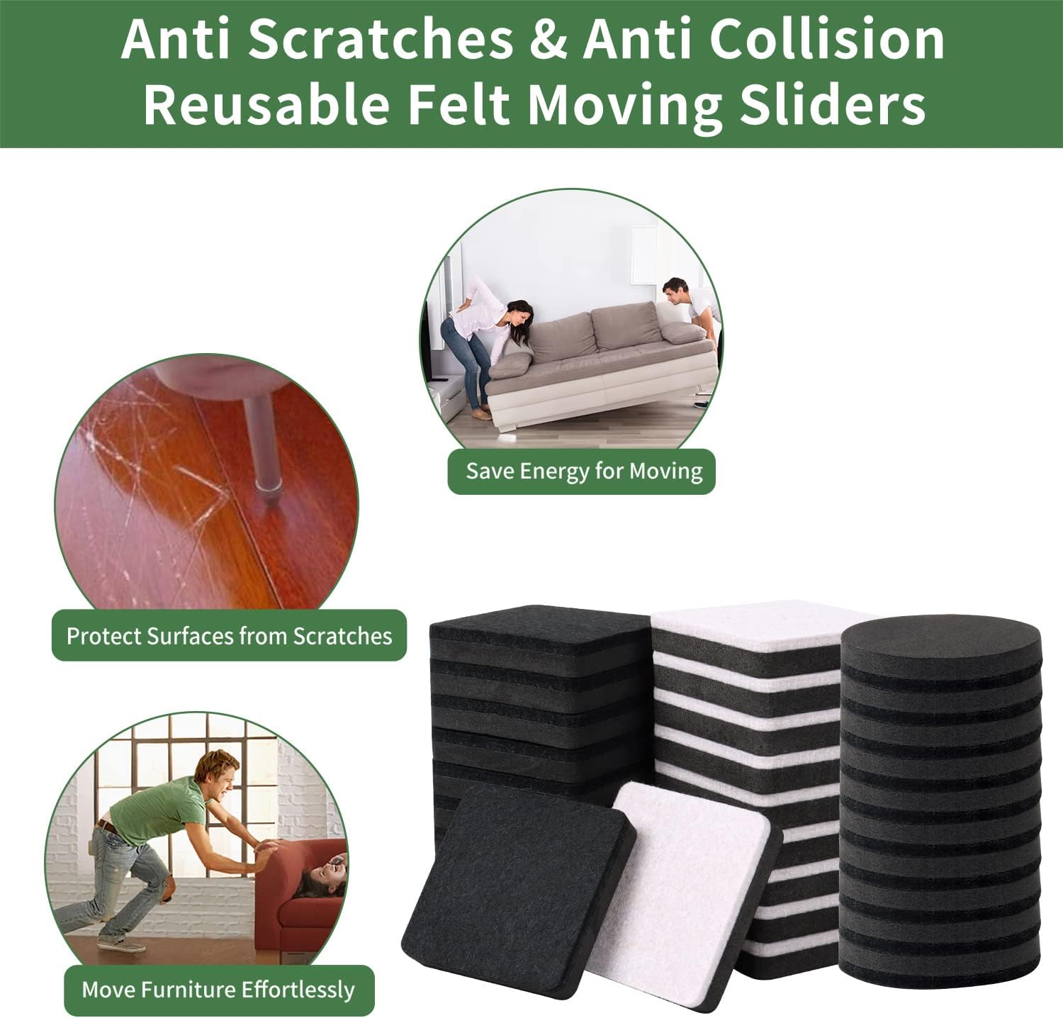 • ❤【Durable Material & Reusable】 - 2.5 inch felt furniture pads made of high-quality EVA foam and non-stick felt, these pads grip furniture securely without glue or stains. Furniture moving pads can be left in place or be removed and reused.