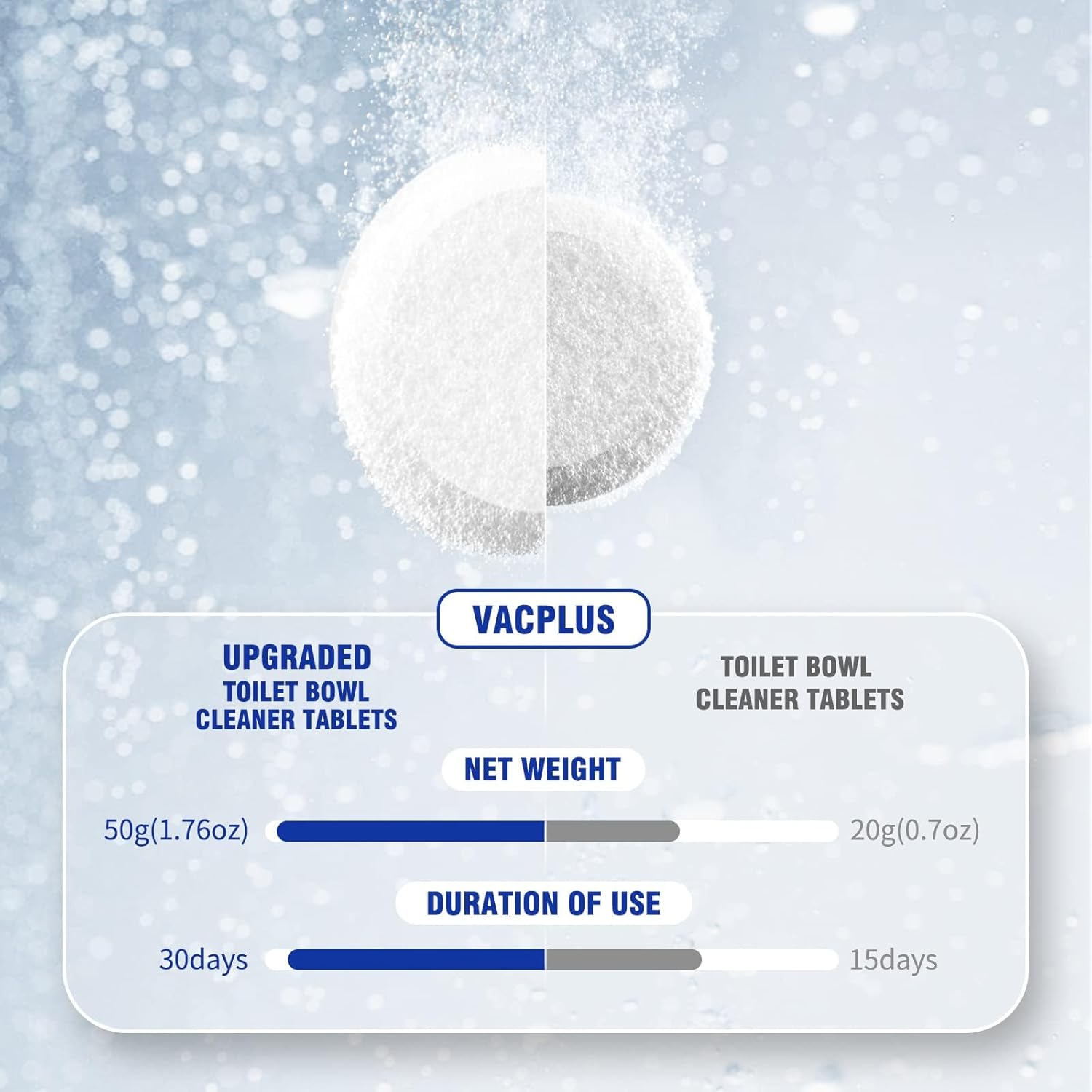 • LASTINGLY CLEAN: With an upgraded capacity of 50g each, a Vacplus toilet cleaner with bleach continuously cleans the toilet for up to 30 days. With 12 packs for replacement use, Vacplus toilet tablets can keep the toilet bowl fresh for more than 12 months.