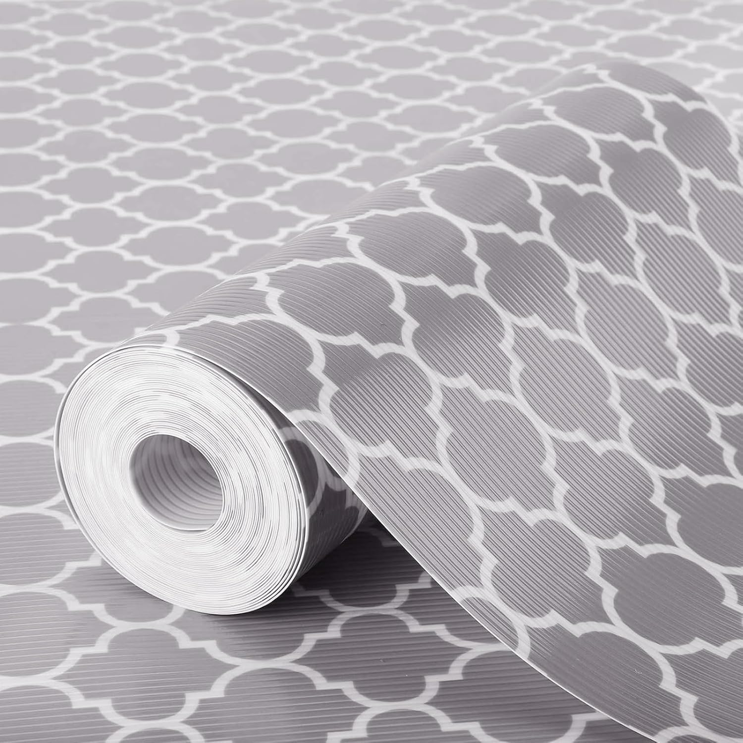 • 👍 NON SLIP CABINET LINERS FOR SHELVES- Measured 24” x 20 ft. with a non-slip double-sided mat, this kitchen drawer liners help prevent spills in storage spaces by keeping your items locked in place and free from unwanted dirt and debris. The quatrefoil design of this wire shelf liner is not only beautiful but also effective to secure your belongings on the wire shelf, glass shelves and so on.