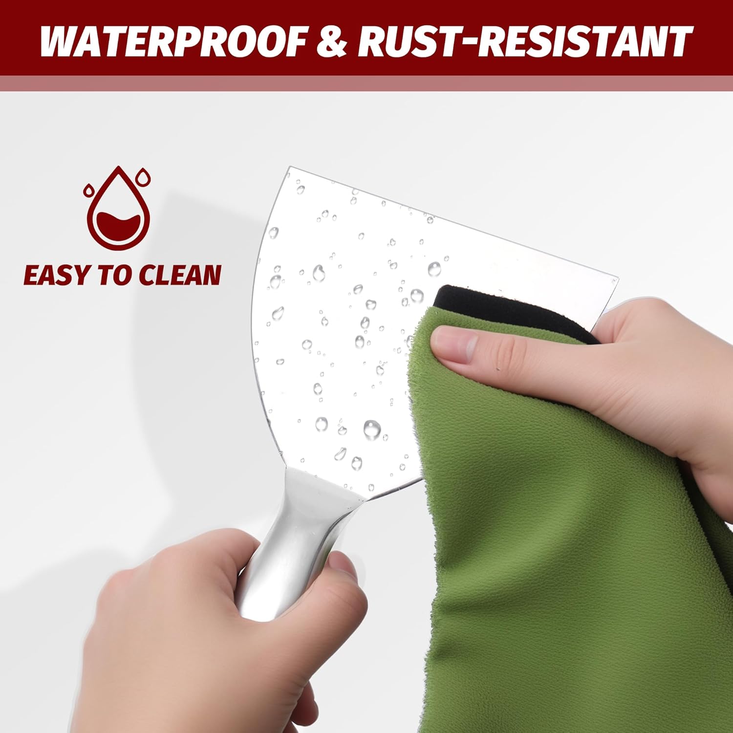 • [ALL STAINLESS STEEL]The putty knives are processed into one piece,that more solid and durable than others.Stainless-steel handle and blade ensure faster application and higher work efficiency