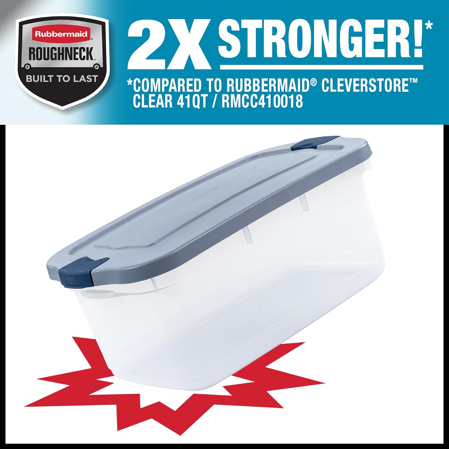 Rubbermaid Roughneck Clear 50 Qt/12 Gal Storage Containers, Pack of 5 with Latching Grey Lids, Visible Base, Sturdy and Stackable, Great for Storage and Organization