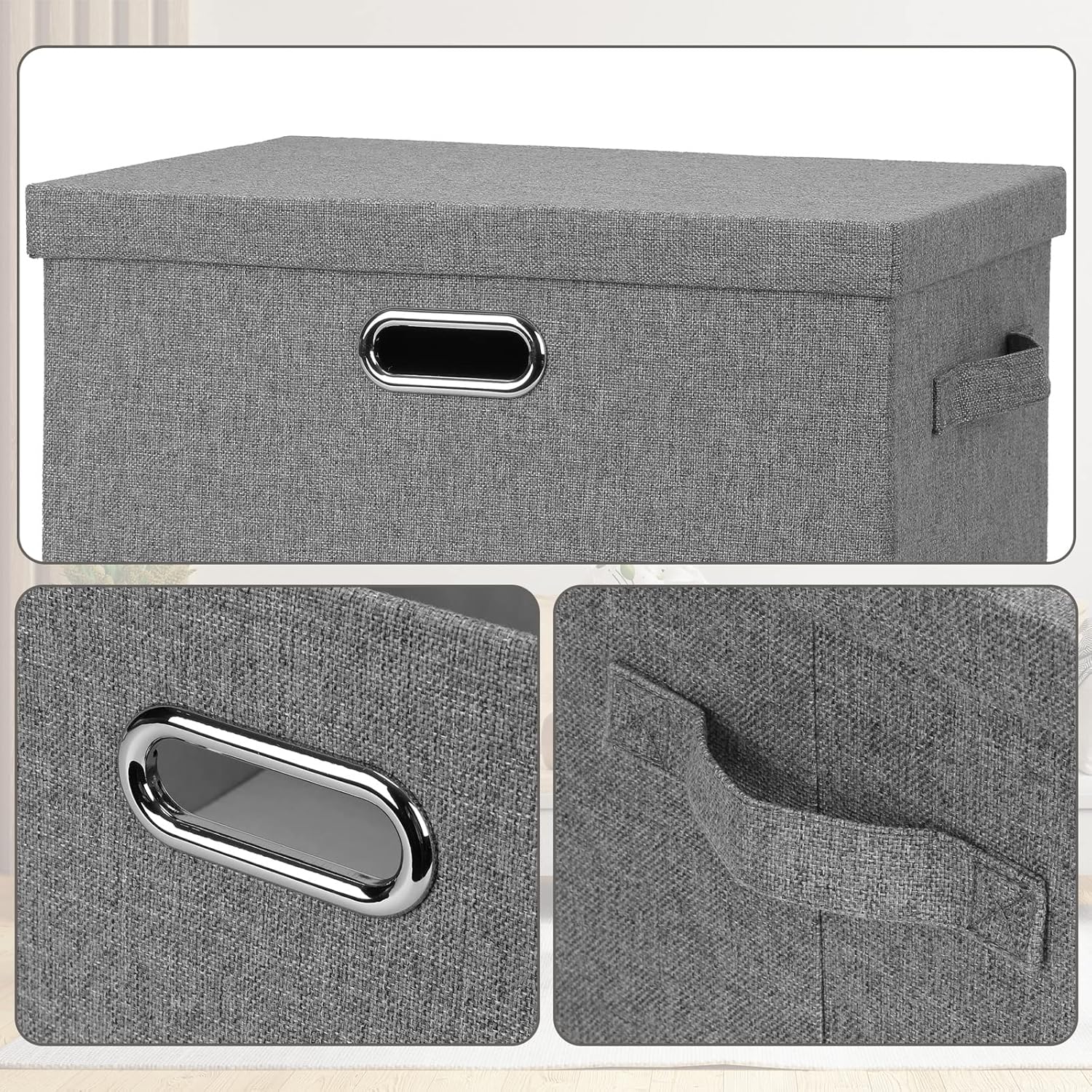 • ✅[Constant Use] Covered by thick textured cloth, our large lidded storage bins prevent daily wears and tears. They can keep dust and bugs out also, avoiding dirt and musty smell. You can use these decorative storage boxes with lids everyday or for long term storage.