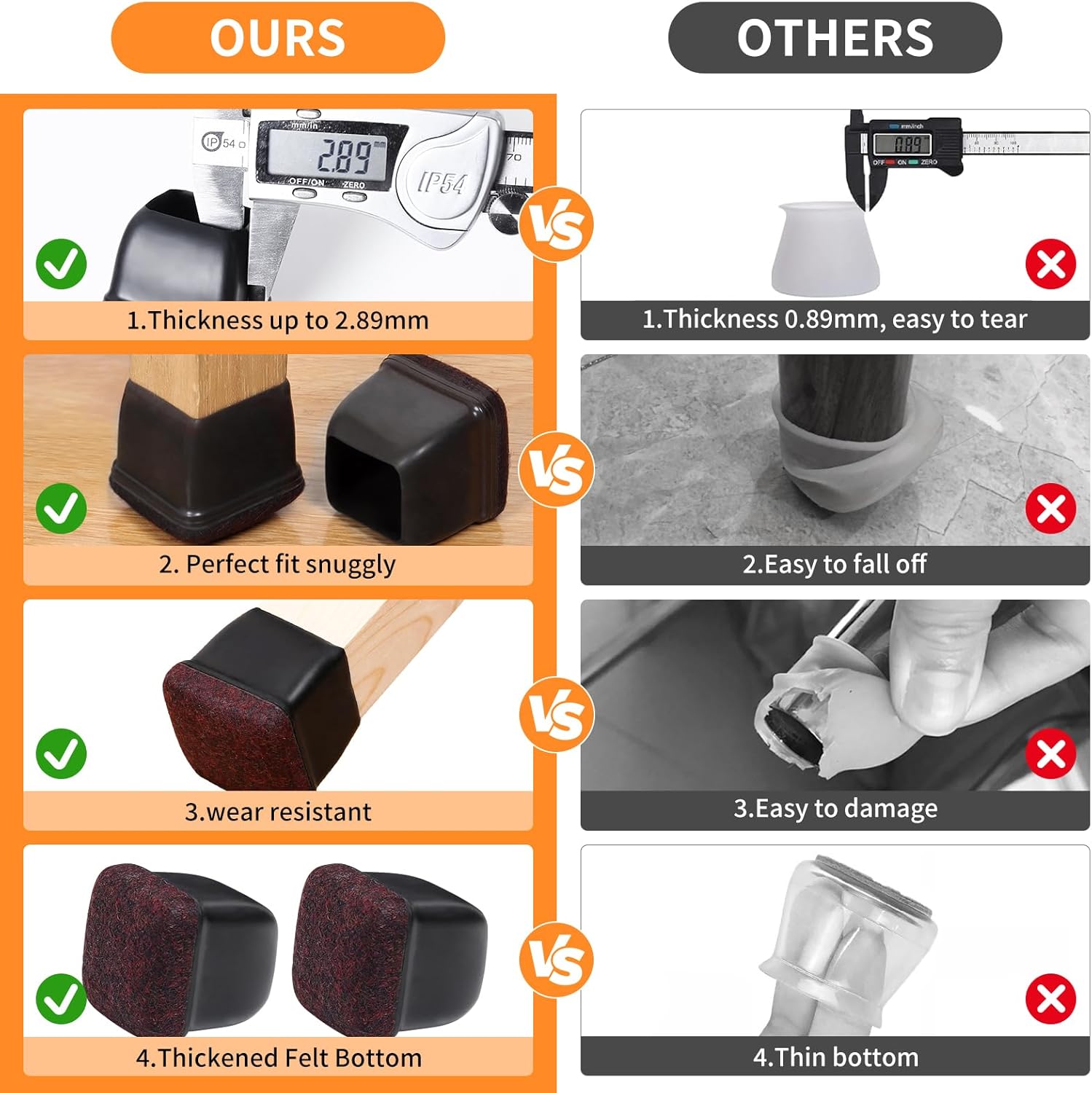 • ☛【Easy to Install】- Rubber chair feet caps are easy to install for anyone who has some grip strength. No tools, just put the table leg pads on furniture leg.