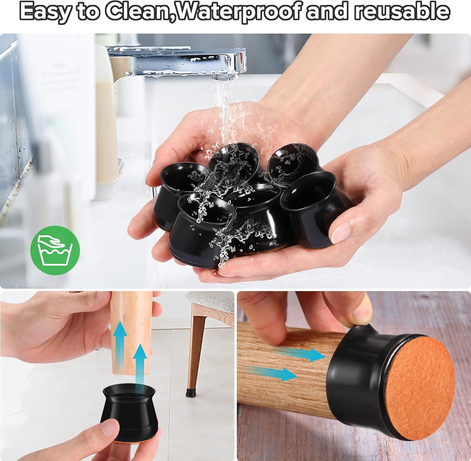 24PCS Upgraded Silicone Chair Leg Floor Protectors for Hardwood Floors, Furniture Sliders for Chair Legs, Felt Bottom Furniture Pads, Anti-Slip Round&Square Cap Covers to Scratch and Reduce Noise