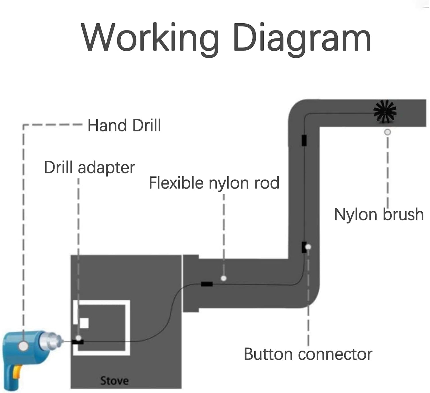 • EASY TO ASSEMBLE: 1. Attach the brush head to nylon rod. 2. Link rods together to attain the pipe length required. 3. Attached the power drill with rod, then start cleaning with it. Kindly remind that while cleaning around corners and turns or stubborn lint trap, slow down and then accelerate slowly.