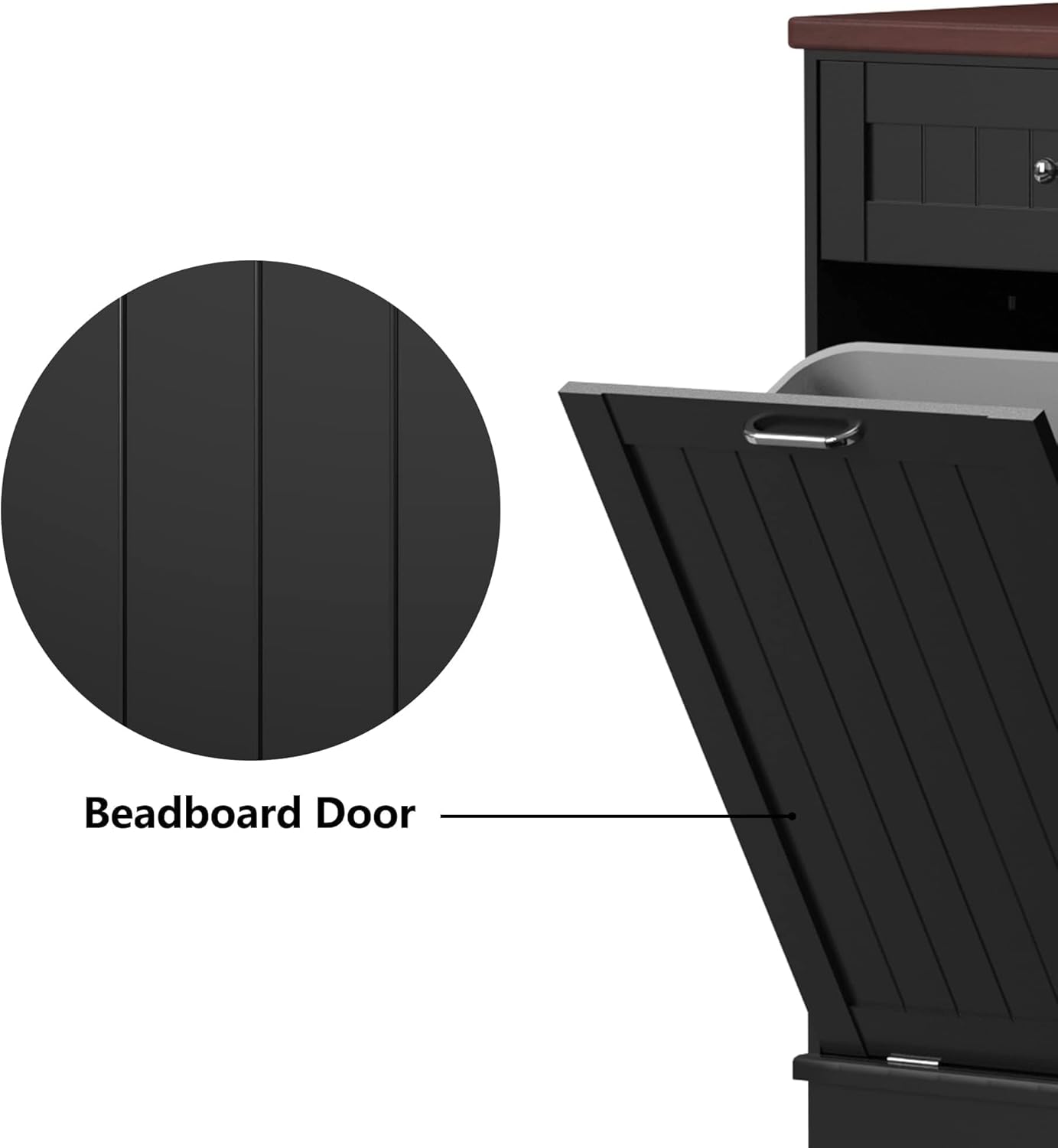 • 🏡【Durable and Stable】cabinet support is stable enough to hold up to a 35 lb (ca. 16 kg). Our Trash can, a perfect match for a 10-gallon trash can(trash can not included). Rubberwood top surface provides extra cutting space, and can easily withstand even a microwave and coffee maker